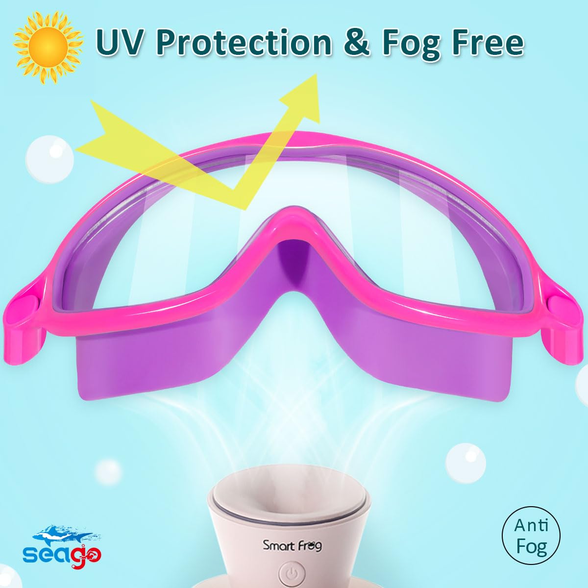 - 【ANTI-FOG】The inner lenses are coated with the latest anti-fog treatment to let you see underwater without blurring or distortion, protecting your kids from heat and the sun's harmful damage. With the anti-fog coating, these goggles defog automatically to make sure the fog won't condense easily and affect the child's sight.