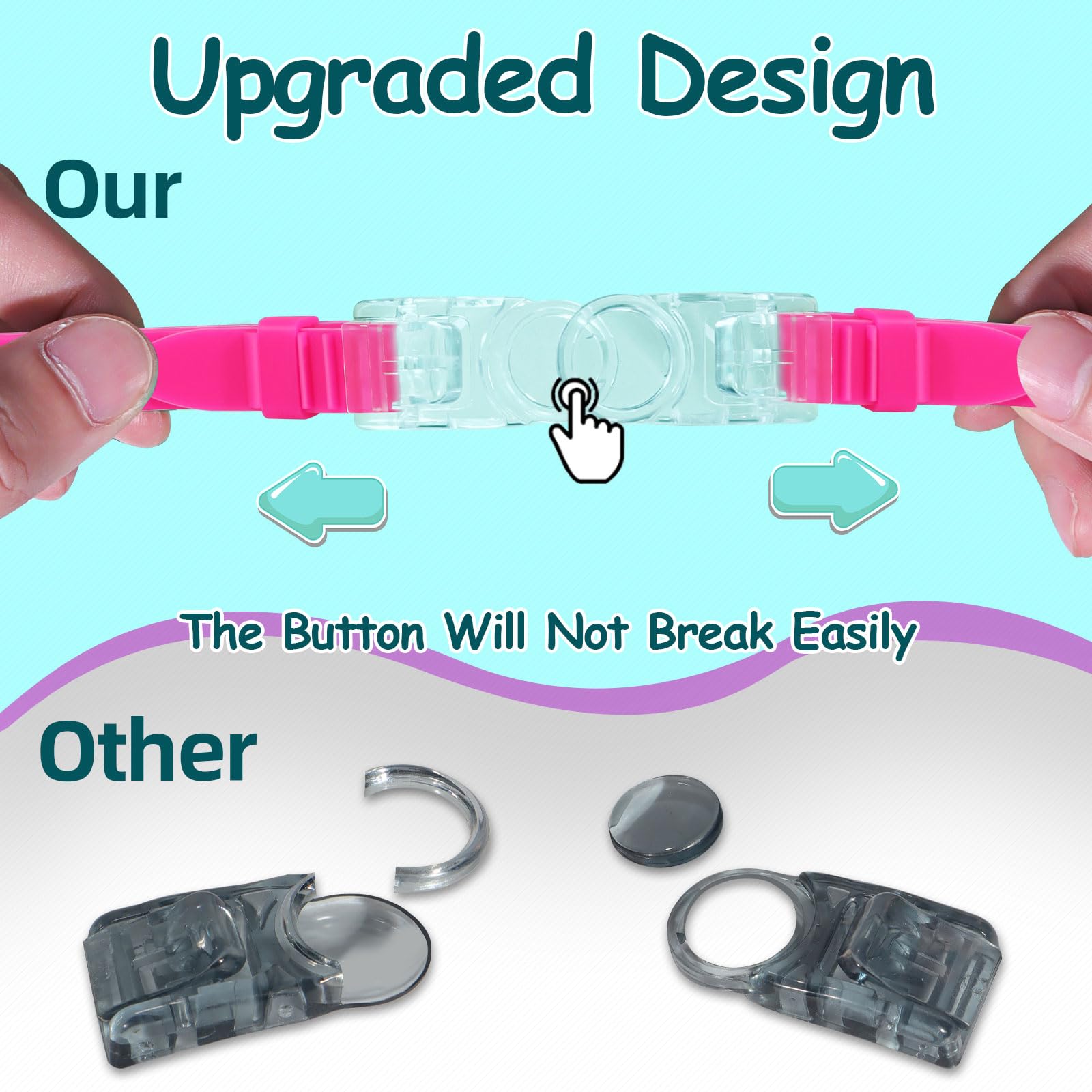 - 【PANORAMIC VIEW & EASY TO WEAR】Our kid's goggles with the mask fit, which is more beautiful and stylish, can broaden your child's horizon underwater. Our button release design is much easier for kids to wear and take off by themselves. In addition, our head straps are easily adjustable.