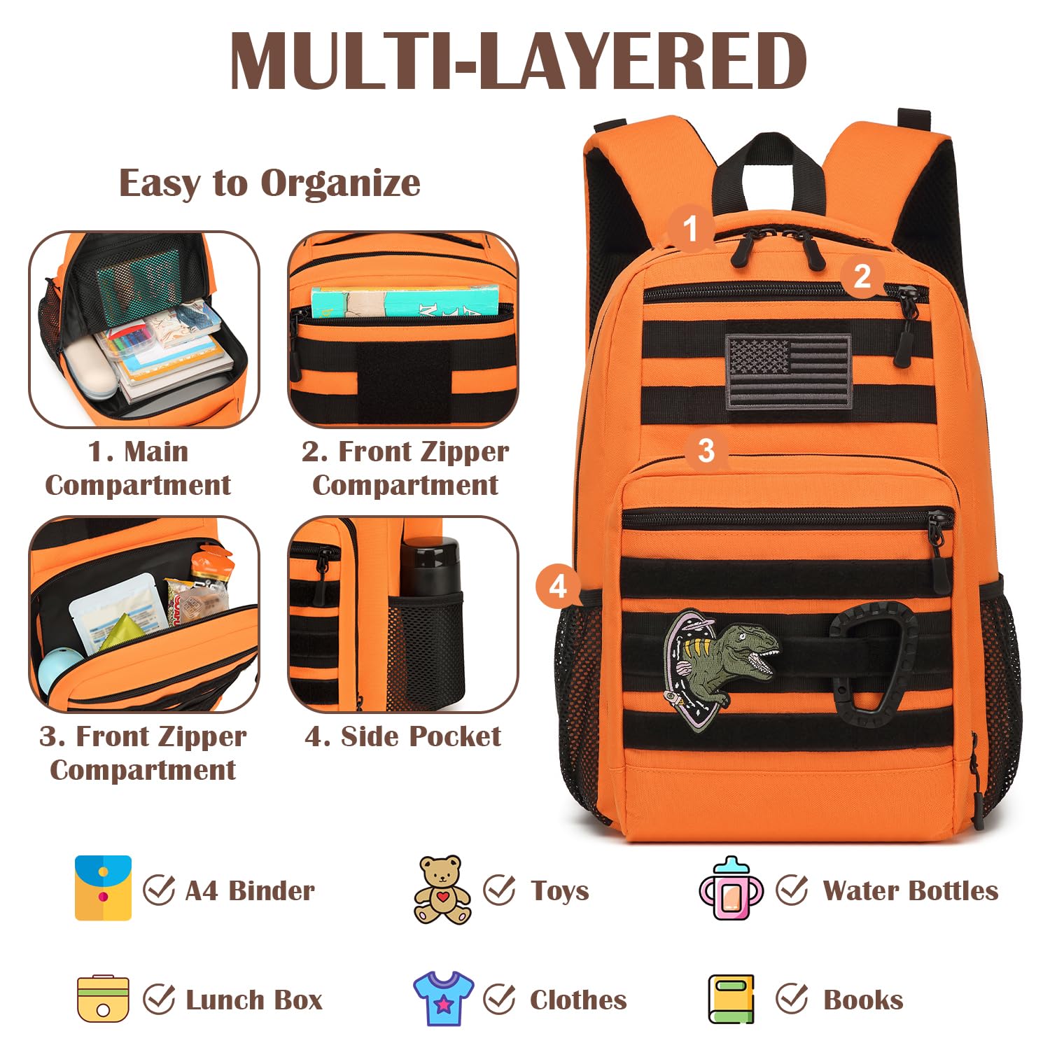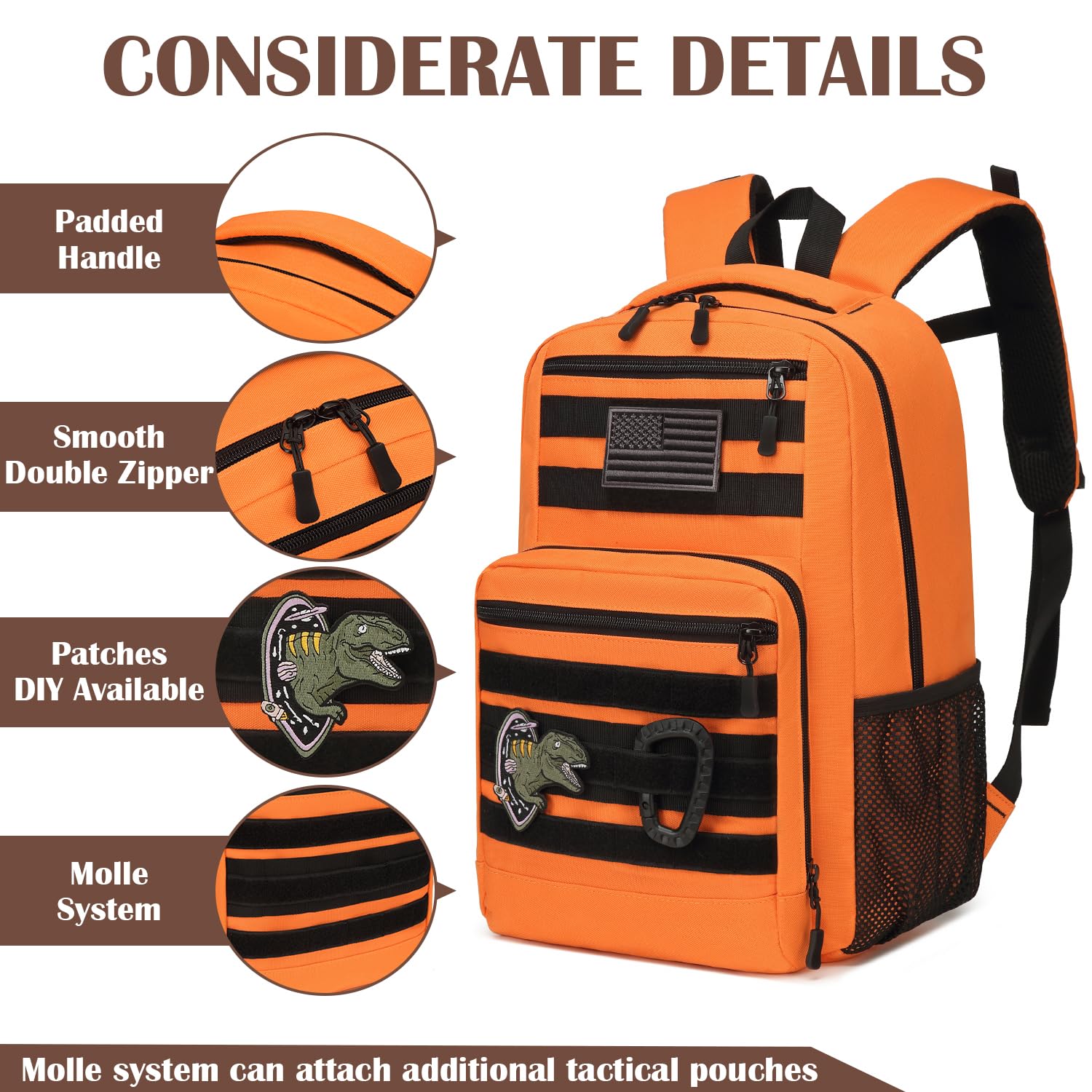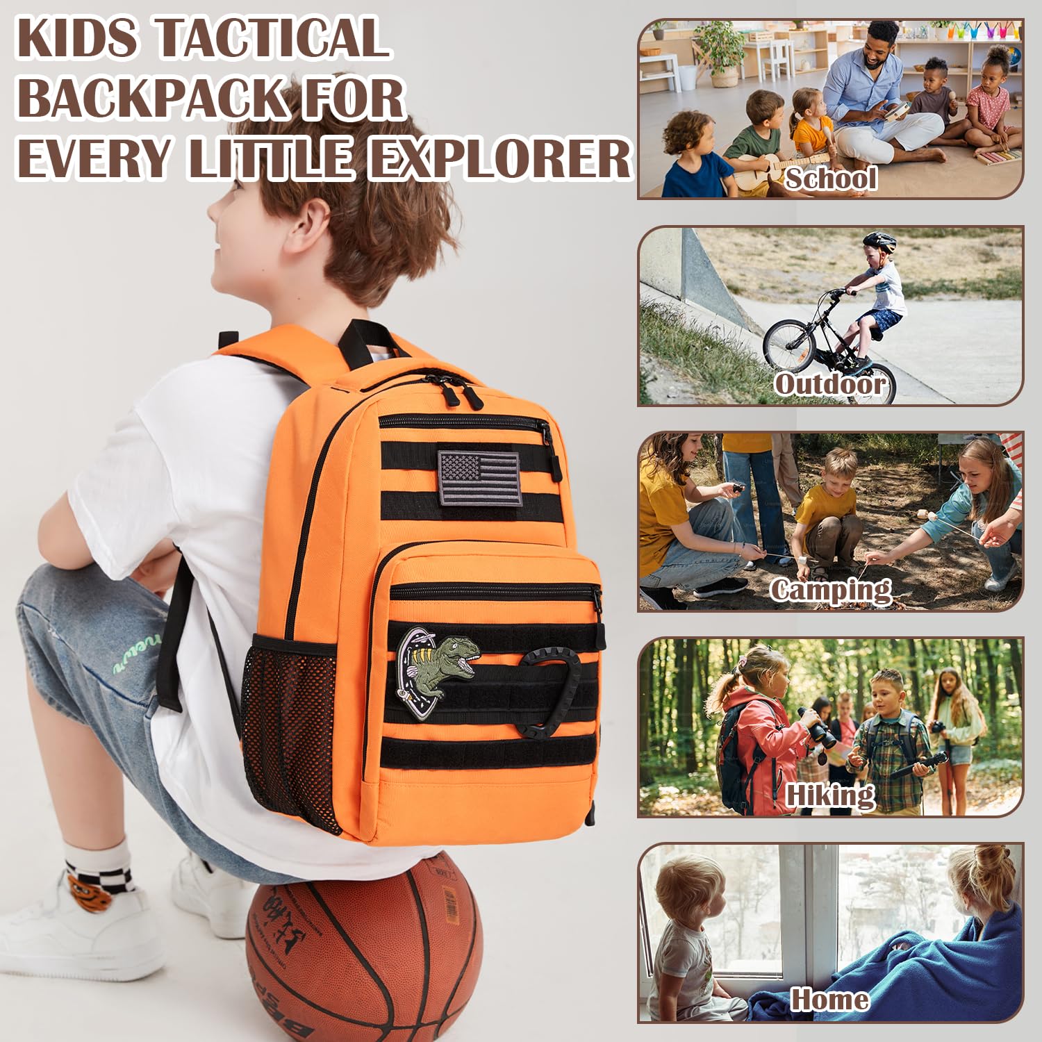 Kids Tactical Backpack Army Molle Bookbag Military Boys Backpack for School, Outdoor, Camping, Orange