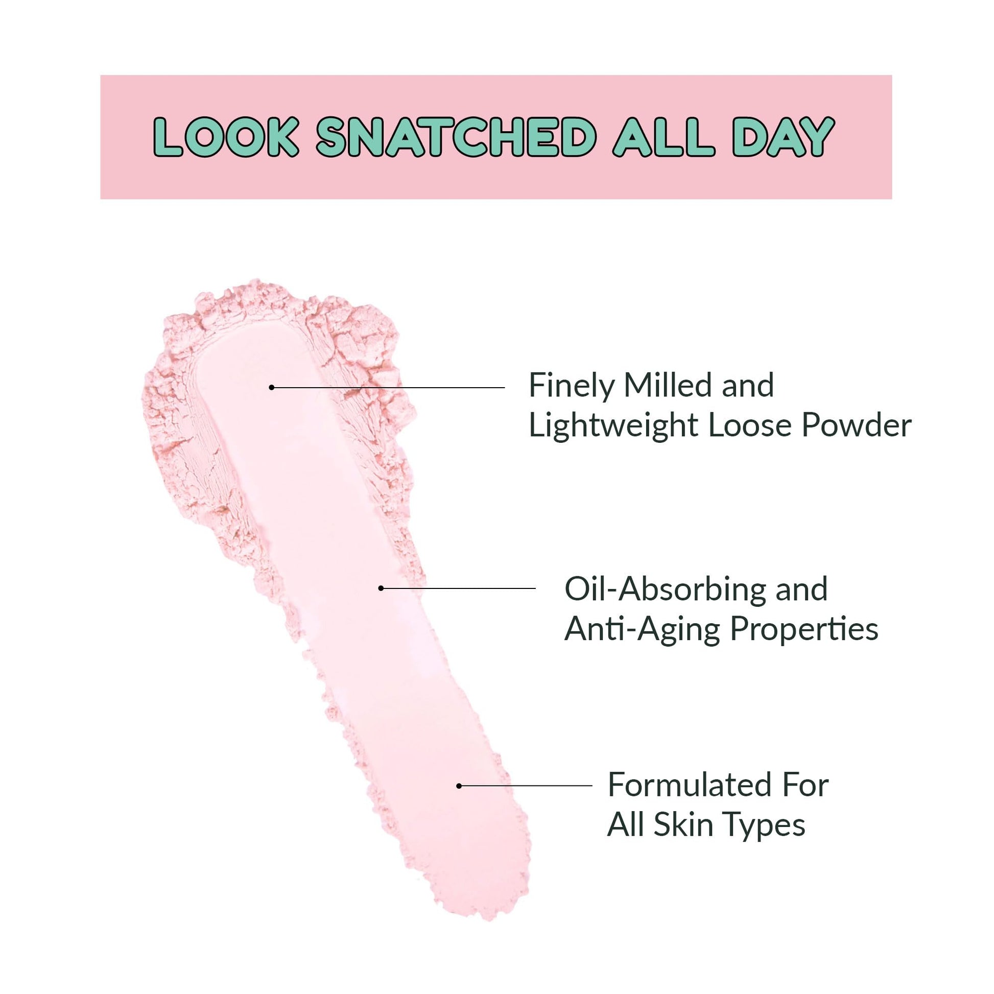 - Loose Setting Powder: Our Puff Puff Pass Setting Powder helps minimize the appearance of fine lines, pores, and unwanted shine for a flawless mattifying airbrush finish; Pink translucent loose powder makeup is perfect for pale with pink undertone complexions