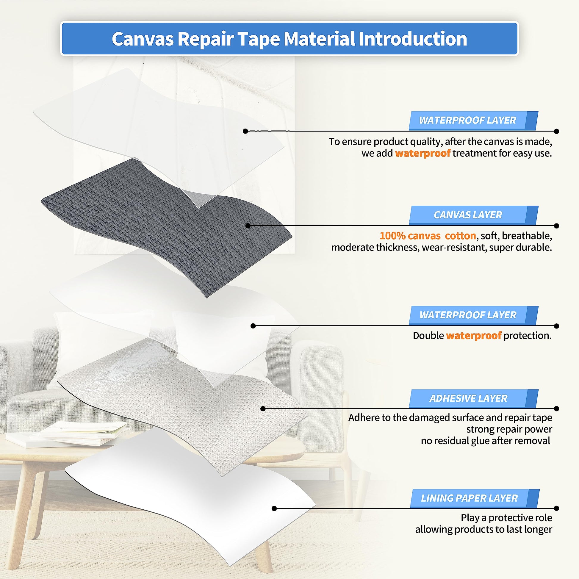 - Wide Applications: The canvas repair patch is suitable for repairing various outdoor gear, such as tents, sunshades, awnings, sails, sofas, and more. It can easily refurbish and repair scratches, holes, cracks, and other damages, eliminating the need to purchase new furniture or outdoor gear. The lightweight packaging allows for easy carrying and storage.