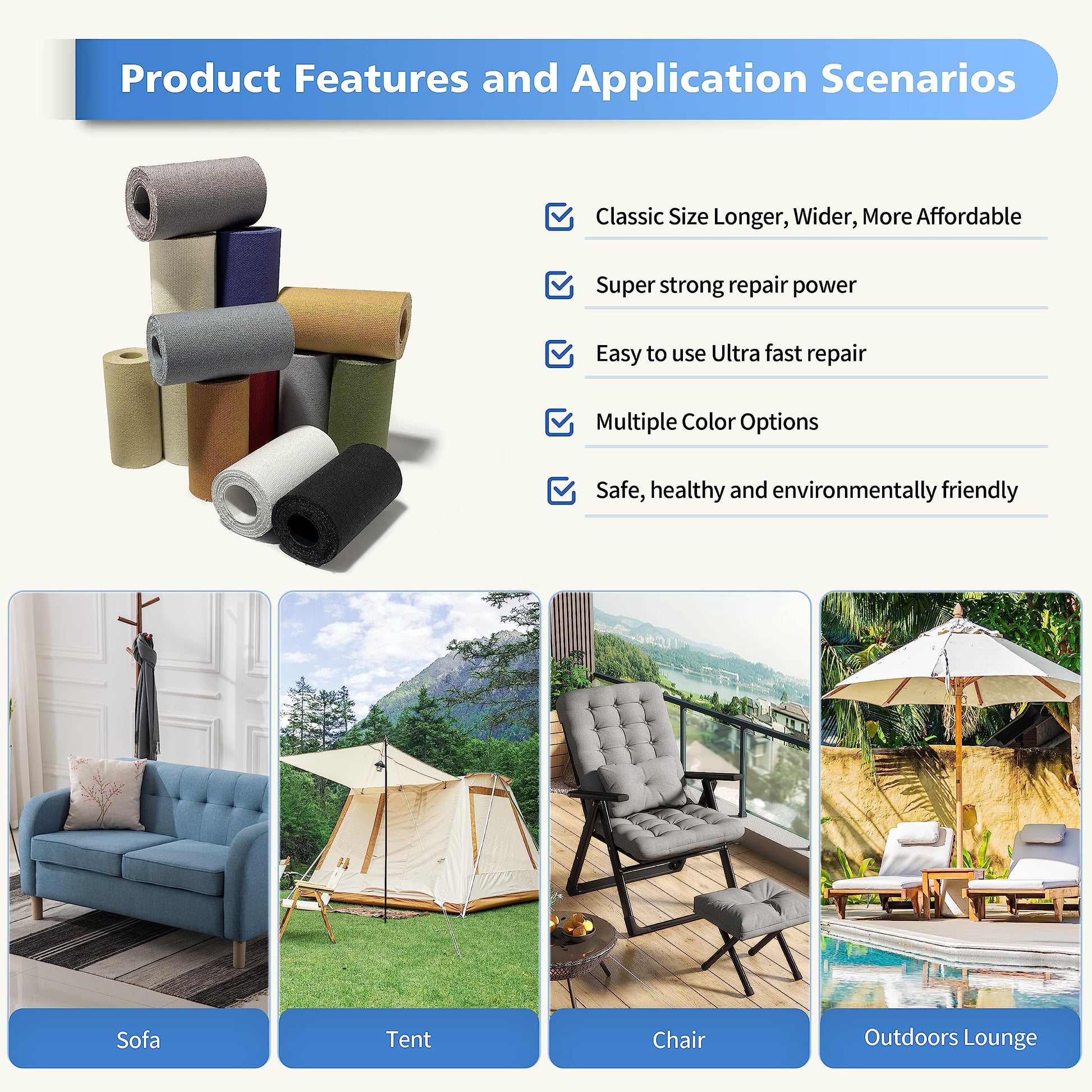 - Wide Applications: The canvas repair patch is suitable for repairing various outdoor gear, such as tents, sunshades, awnings, sails, sofas, and more. It can easily refurbish and repair scratches, holes, cracks, and other damages, eliminating the need to purchase new furniture or outdoor gear. The lightweight packaging allows for easy carrying and storage.