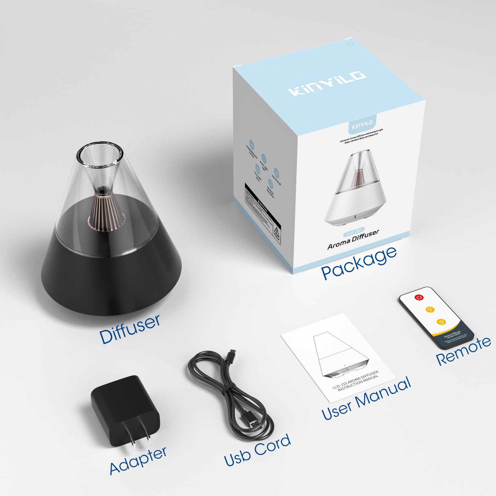 - [ Oil Diffuser for Personal ] : KinYiLO space-saving essential oil diffuser is compact, making it perfect for a single room. With a 150ml water tank, you can enjoy your favorite fragrance for a day on a single fill. Plus, the calming candle-like night light adds an extra touch of coziness to your peaceful moment.