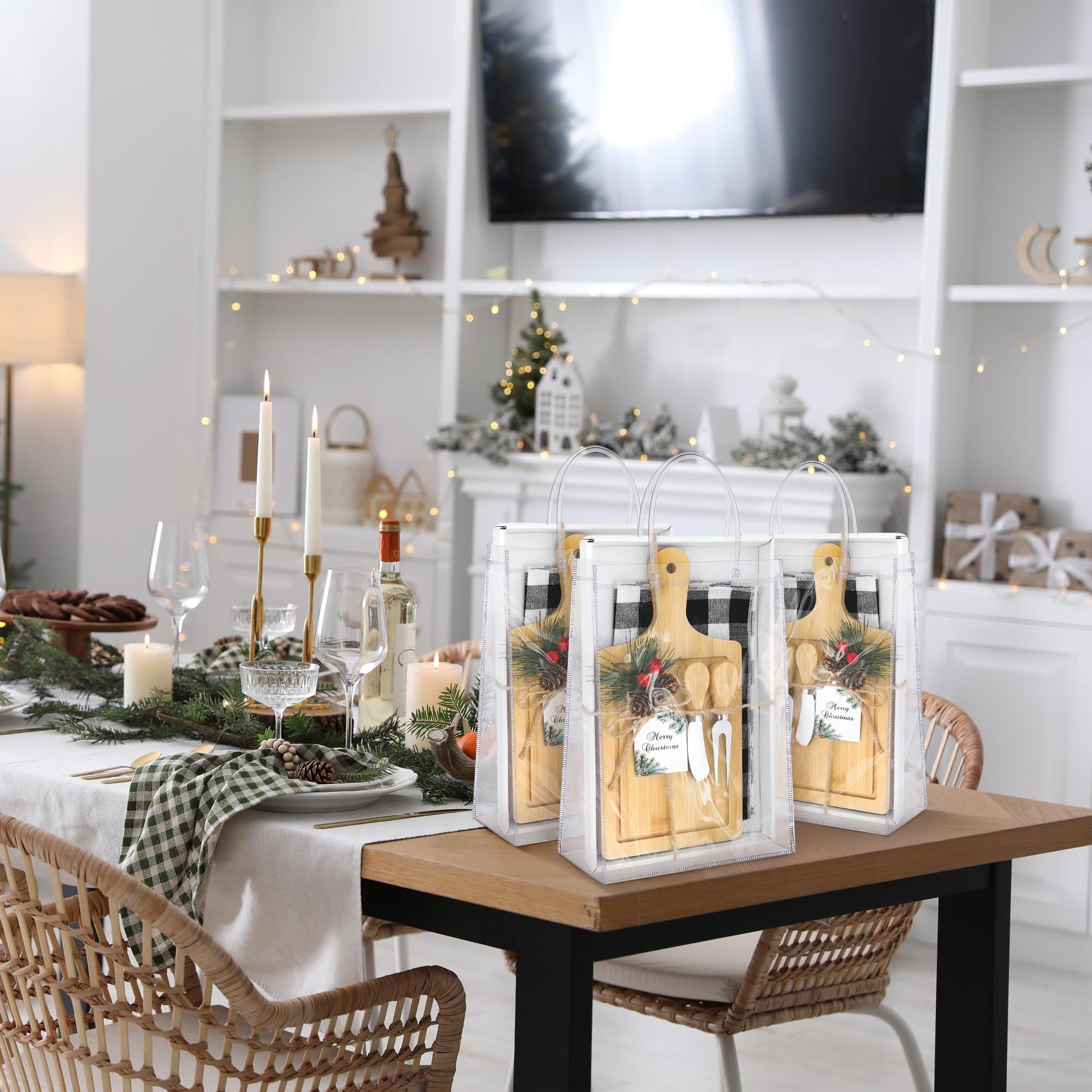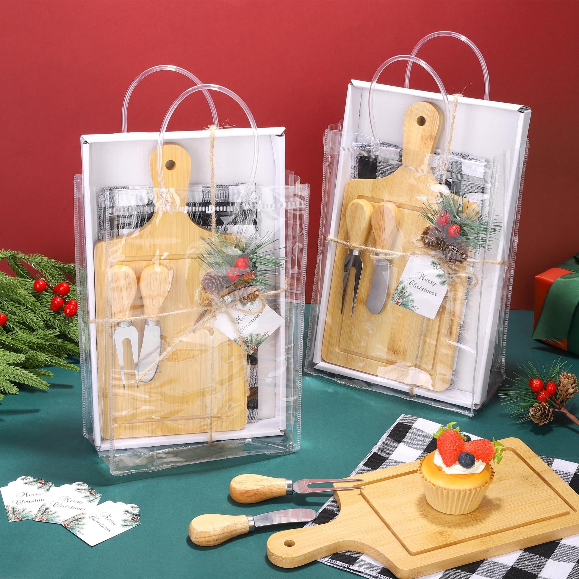 - Complete Gift Set: you will receive 6 sets of Christmas gifts, including 6 cheese boards, 6 butter knives, 6 forks, 6 classic black and white buffalo plaid towels, 6 artificial spruce branches, 6 festive gift tags, 6 transparent gift bags, and 1 roll of decorative twine; every detail is thoughtfully curated to bring both convenience and style to your holiday preparations