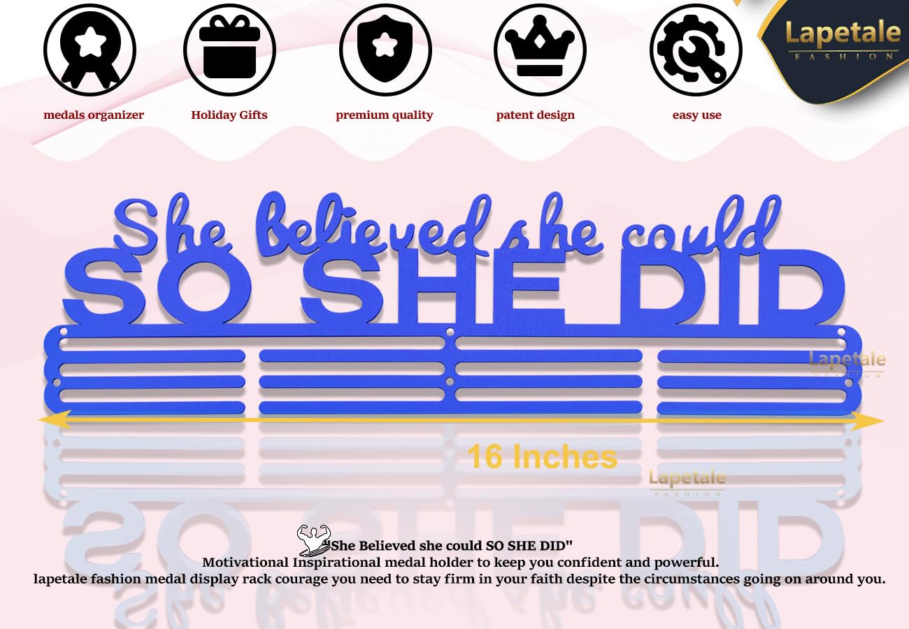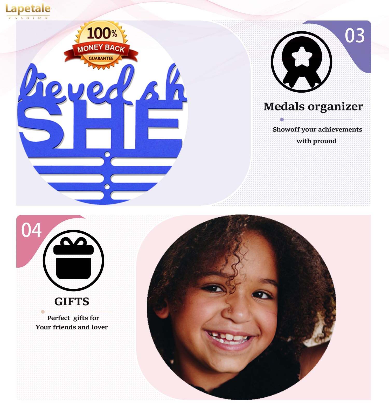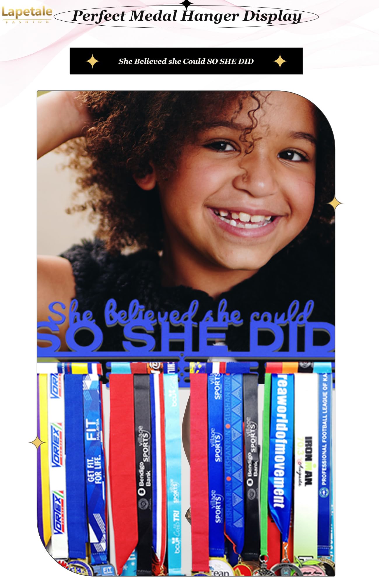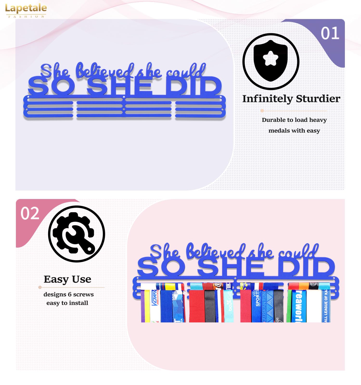 - 【PATENT D889882s】lapetale fashion designed race medal display rack for all medals and ribbons. Medal hanger with sturdy and solid surface better than other similar medal holder display. sports medal hanger can holds up medals and ribbons easily. marathon medal display for sports with sturdy metal material and original design, which different from other race medal holder wall hanger on the market, suit for medals holder display, medal holder for wall gymnastics, soccer, dancing, wrestling