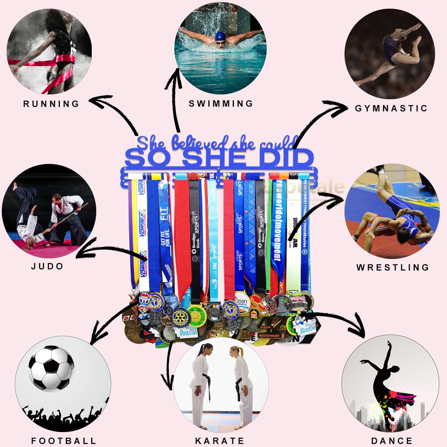 - 【AWESOME GIFTS】Medal hanger is great for all Athlete’s and runners superstars!Whether you enjoy sports, we know you’re going to love displaying all of your hard-earned medals on this awesome medal hanger display.This metal holders for your metals makes a great gifts for a friends or family member and is perfect for birthdays, mother’s day, Valentine’s day, Father’s day holidays and endless other special occasions!