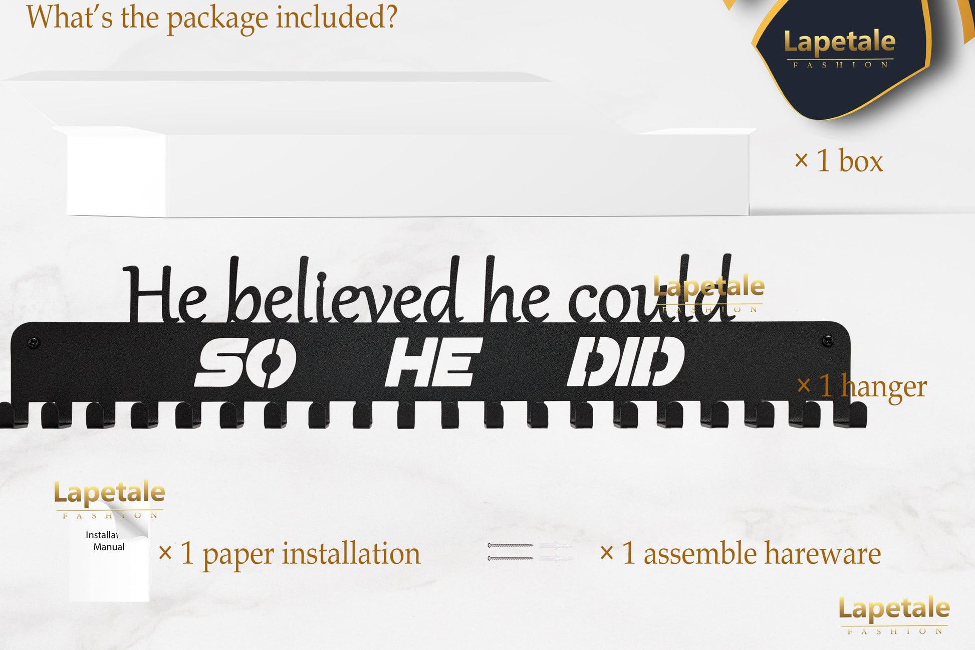 Lapetale Fashion He Believed He Could SO HE DID Medal Hanger Holder Display Rack for All Sports Metal Steel Medal Hanger Holder,Wresting Medal Holder for Boys in 16" Long,Medal Holder for Wall
