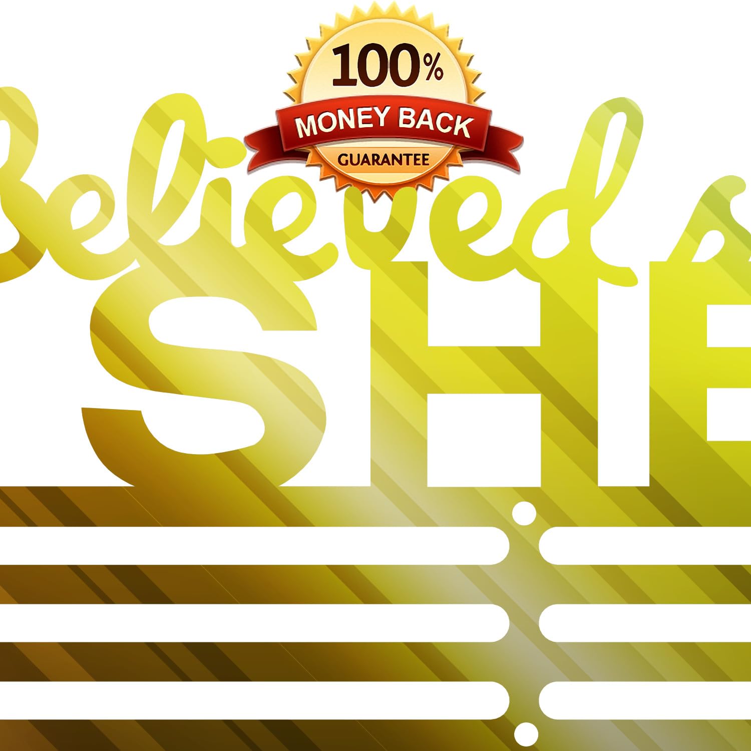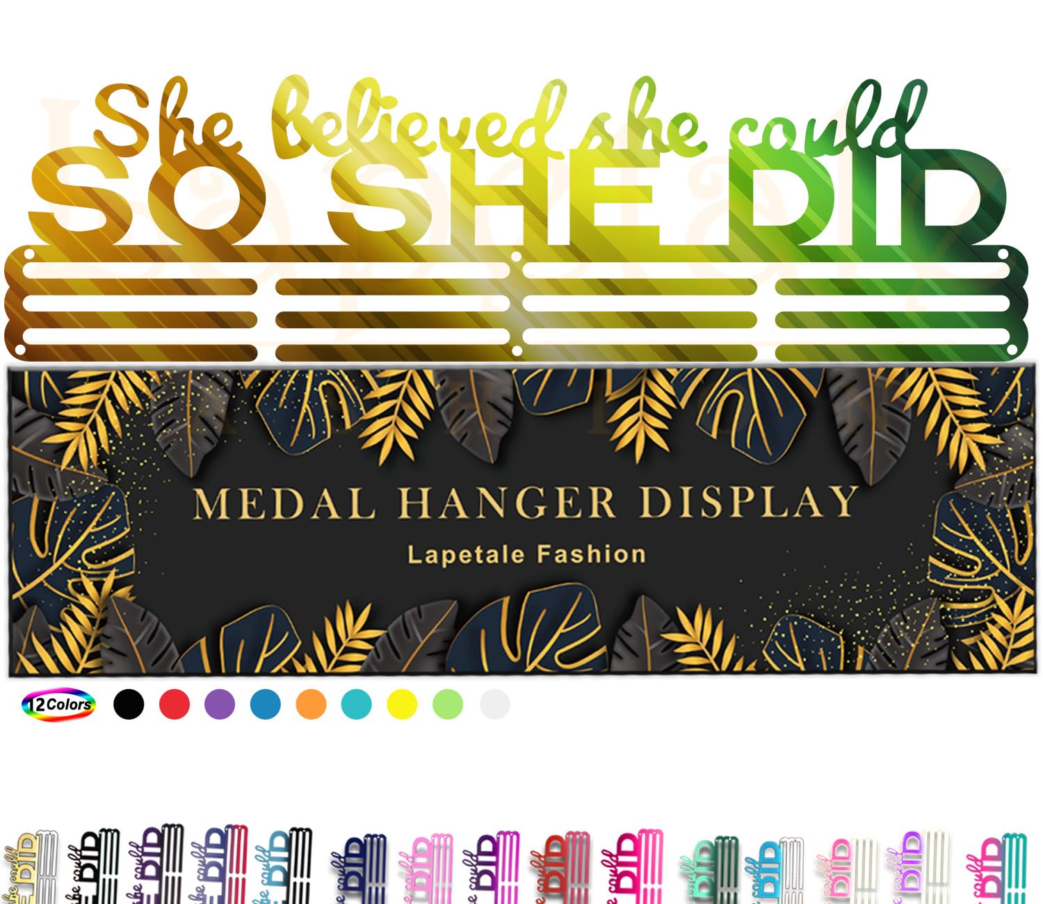 - 【STYLISH MEDAL HOLDER FOR SPORTS】runner medal hanger display design of this display wall mounted is not only a esthetic home decoration but also a great gift for your family or friends. sports medal hanger display won't go missing or collect dust in a drawer or closet; The 'She Believed She Could SO SHE DID ' medal display motivates you to keep pushing your limits and strive for greatness.The size of the metal hanger display: 16 inches long