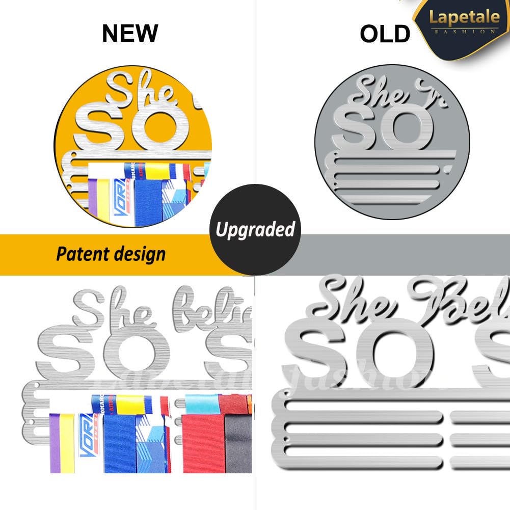 - 【PATENT D889882s】lapetale fashion designed race medal display rack for all medals and ribbons. Medal hanger with sturdy and solid surface better than other similar medal holder display. sports medal hanger can holds up medals and ribbons easily. marathon medal display for sports with sturdy metal material and original design, which different from other race medal holder wall hanger on the market, suit for medals holder display, medal holder for wall gymnastics, soccer, dancing, wrestling