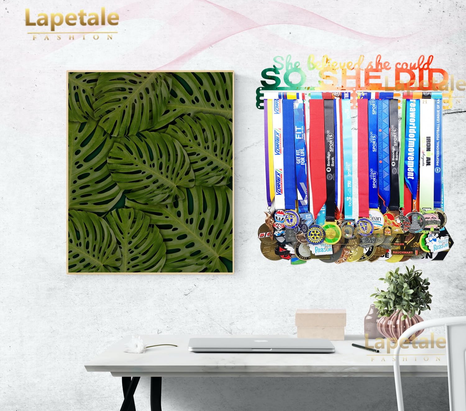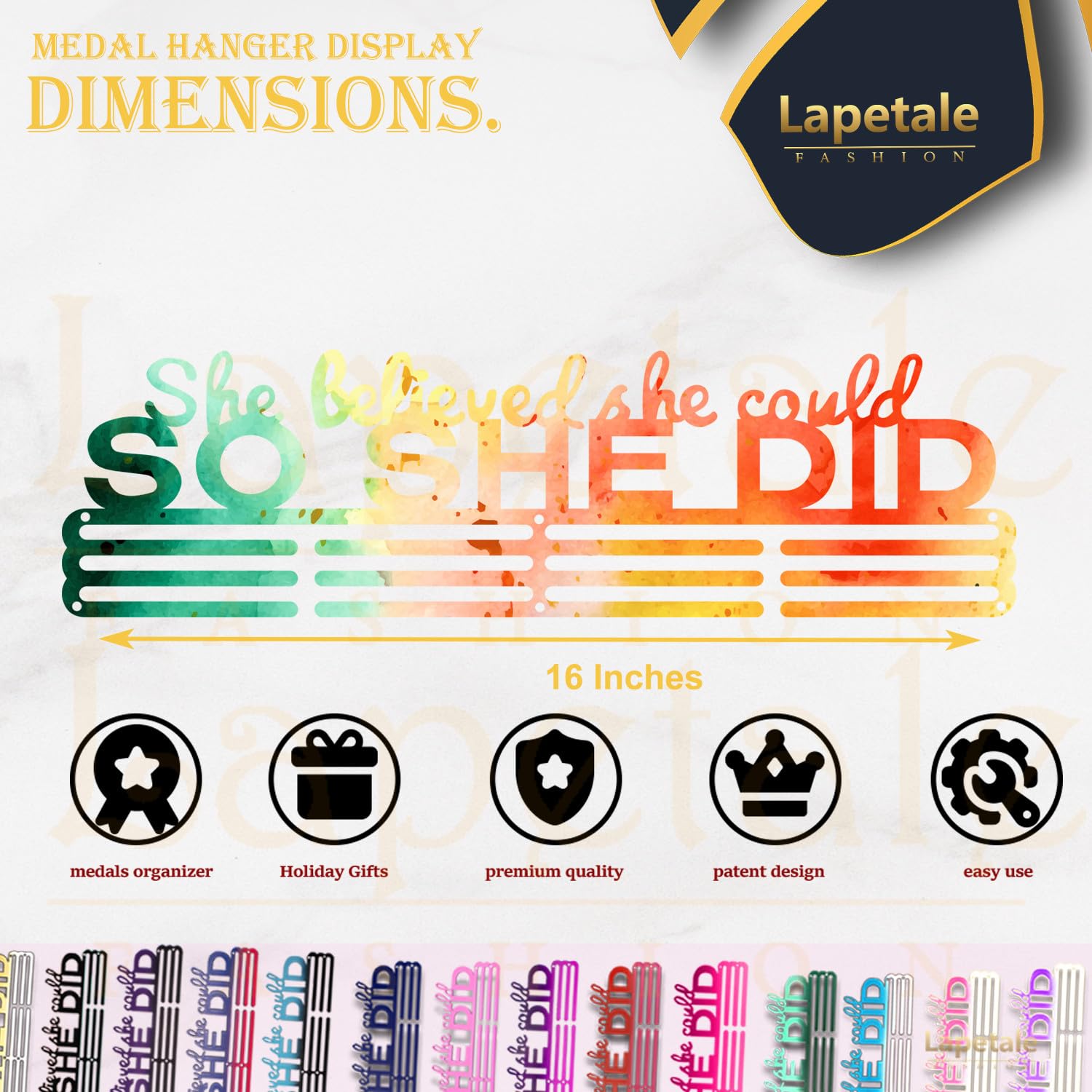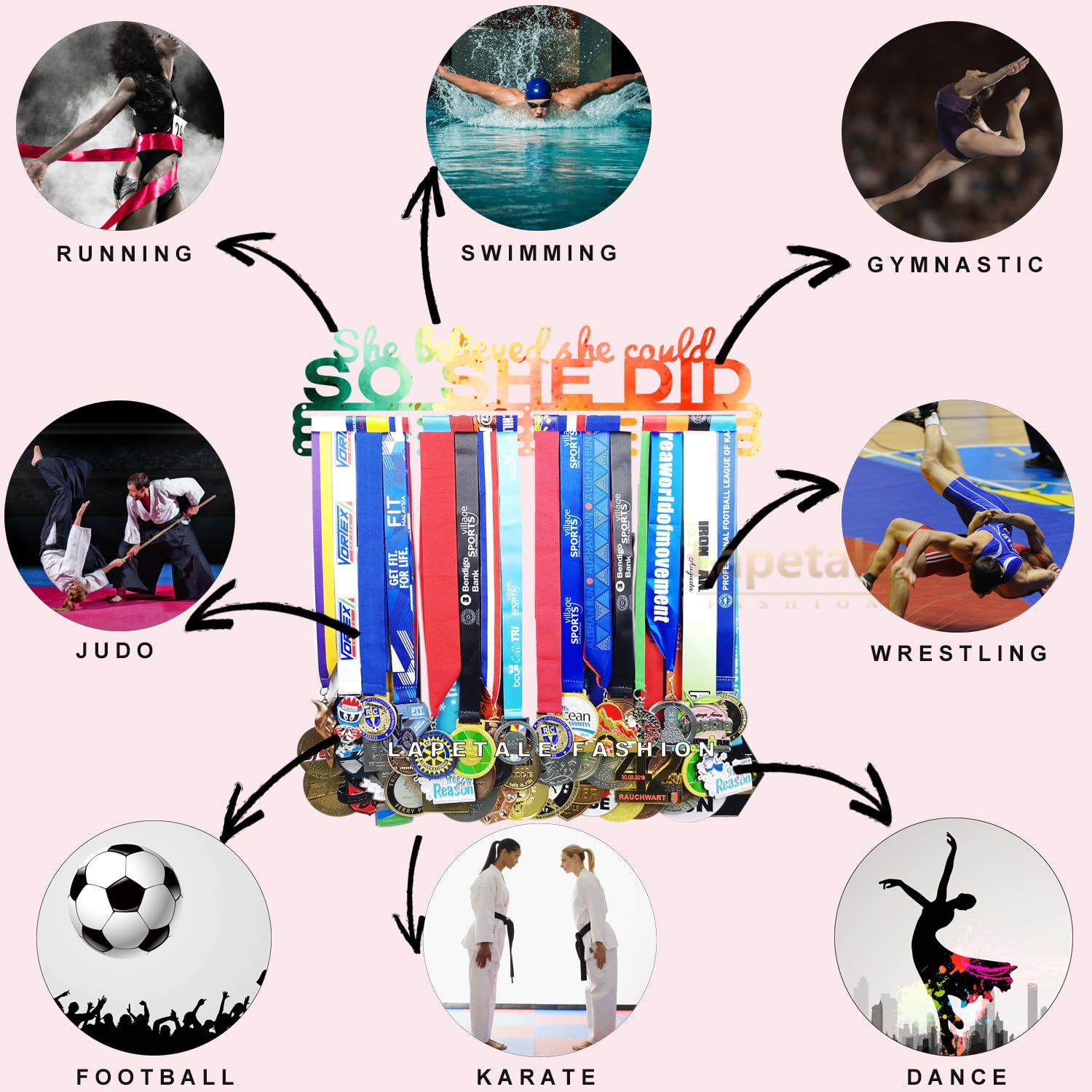 - 【PATENT DESIGN】lapetale fashion designed race medal display rack for all medals and ribbons. Medal hanger with sturdy and solid surface better than other similar medal holder. sports medal hanger can holds up medals and ribbons easily. medal holder for sports with sturdy metal material and original design, which different from other medal holder on the market, suit for custom medals display hanger, medal display gymnastics, soccer, dancing, wrestling, running