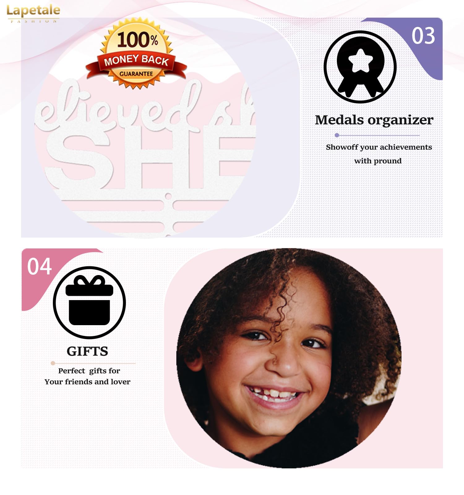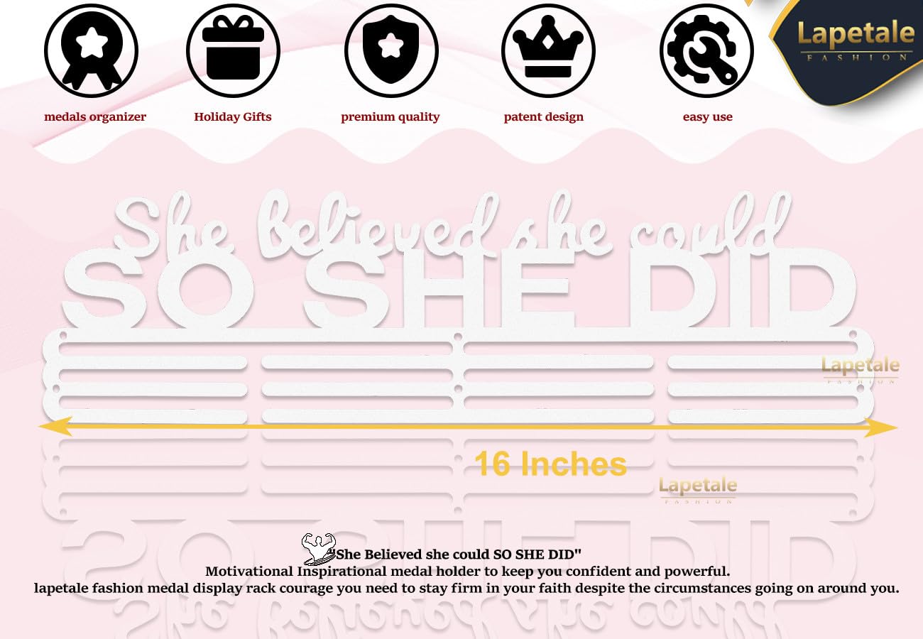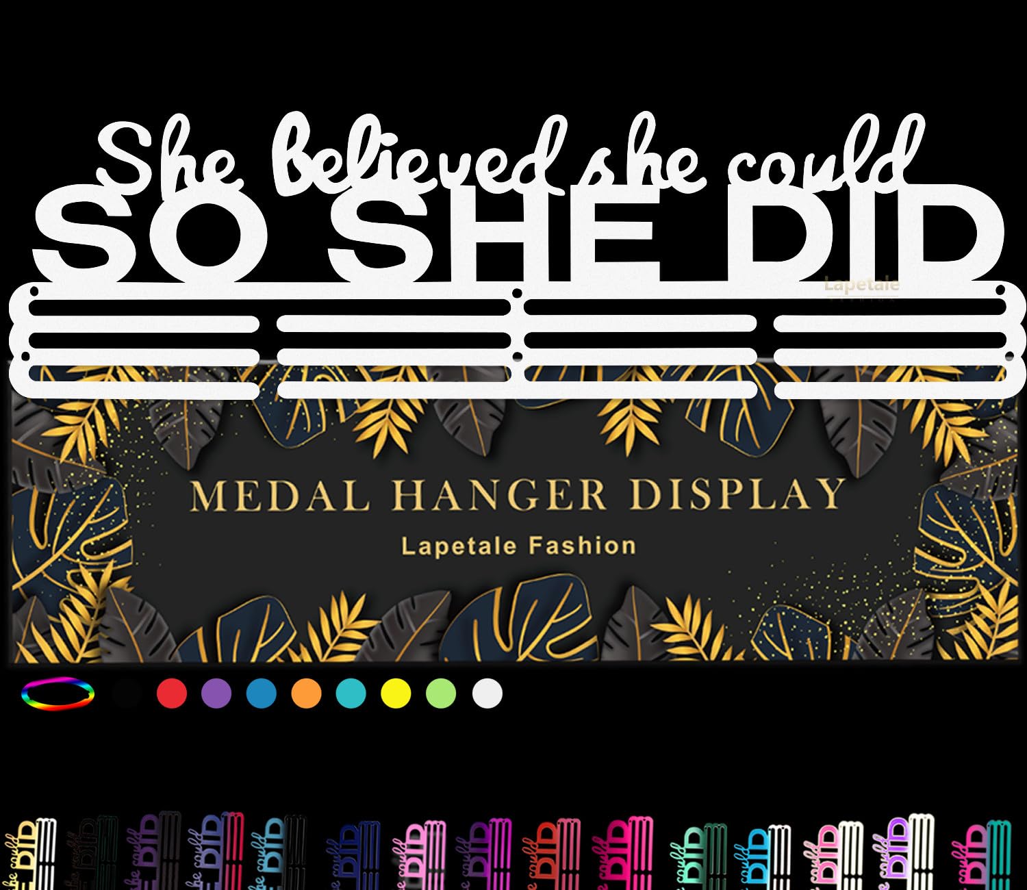 Lapetale Fashion She Believed She Could SO SHE DID White Medal Hanger Display Holder for Medals,Ribbons,soccer,gymnastics,wrest,run,swim