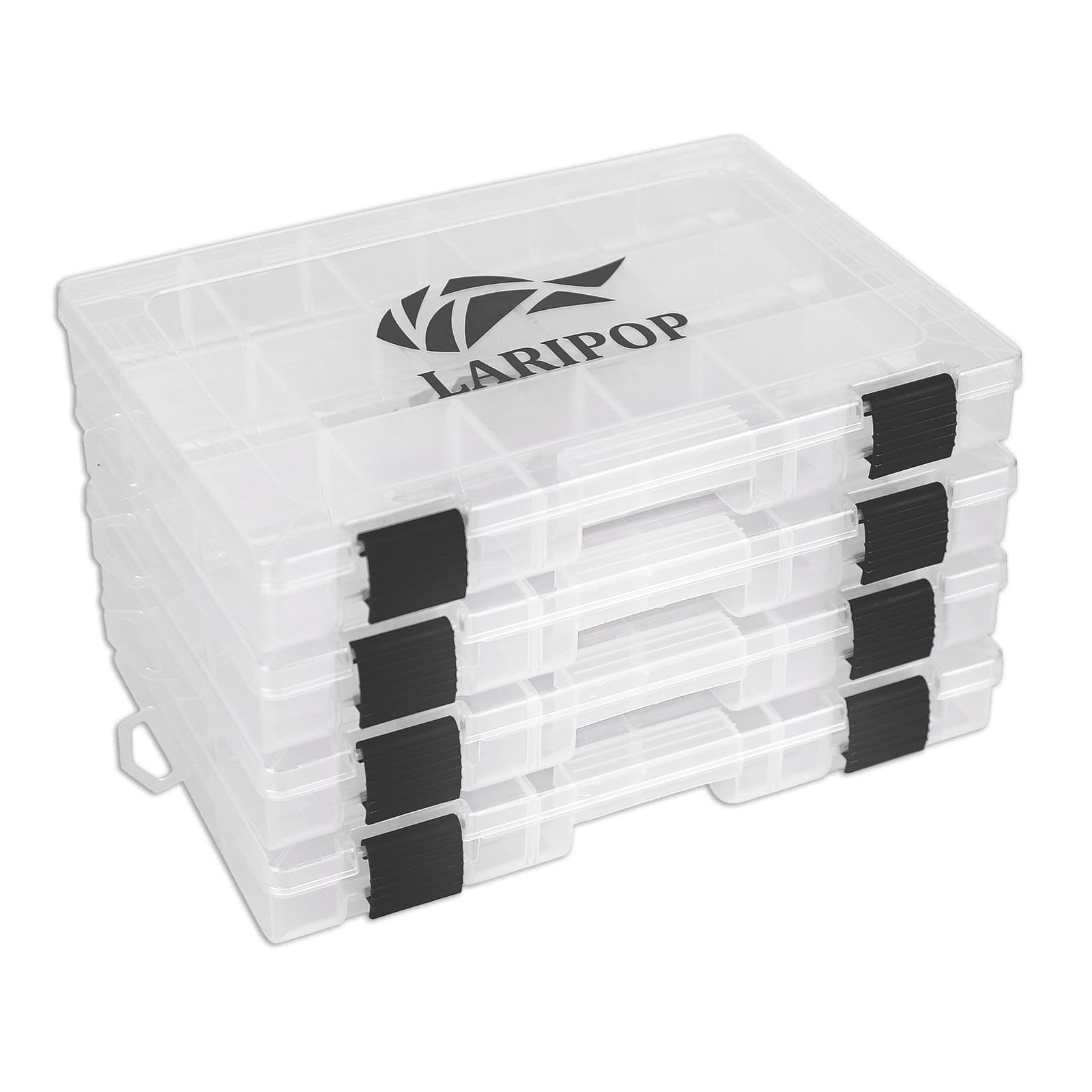 LARIPOP Fishing Tackle Box Set with Adjustable Dividers, Transparent Organizer Tray, Plastic Tool Box, Bait Separator -Angler's equipment lure box - 2 Packs /4 Packs Tackle Trays - Parts Box