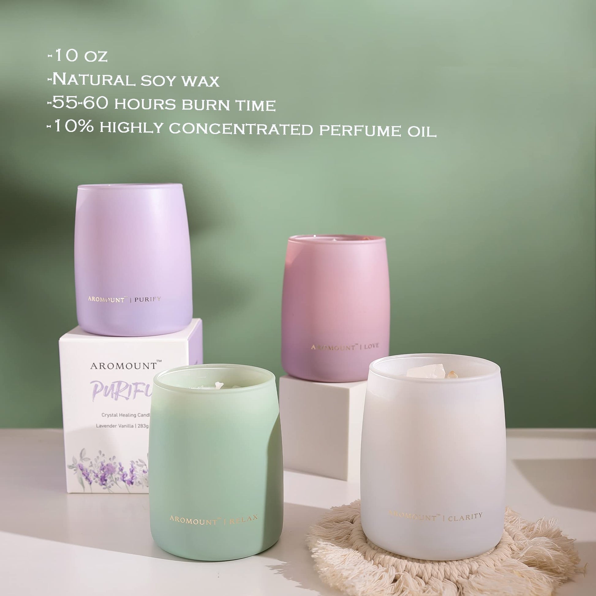 - PERFECT GIFT: This candle arrived in a beautiful gift box,luxurious matte coating glass jar and gold foiled logo,infused with healing gemstones and beautiful dried flowers. It's a perfect gift for a friend,loved ones or even better treat for yourself for all occasions