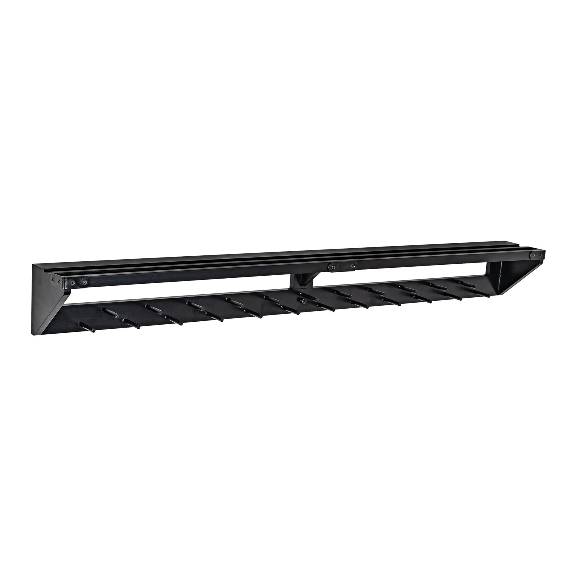 LAVIEVERT Gymnastic Medal Hanger with Storage Shelf, Wooden Wall-Mounted Trophy Shelf, Race Medal Display Rack Holder with 23 Hanging Bars - Black