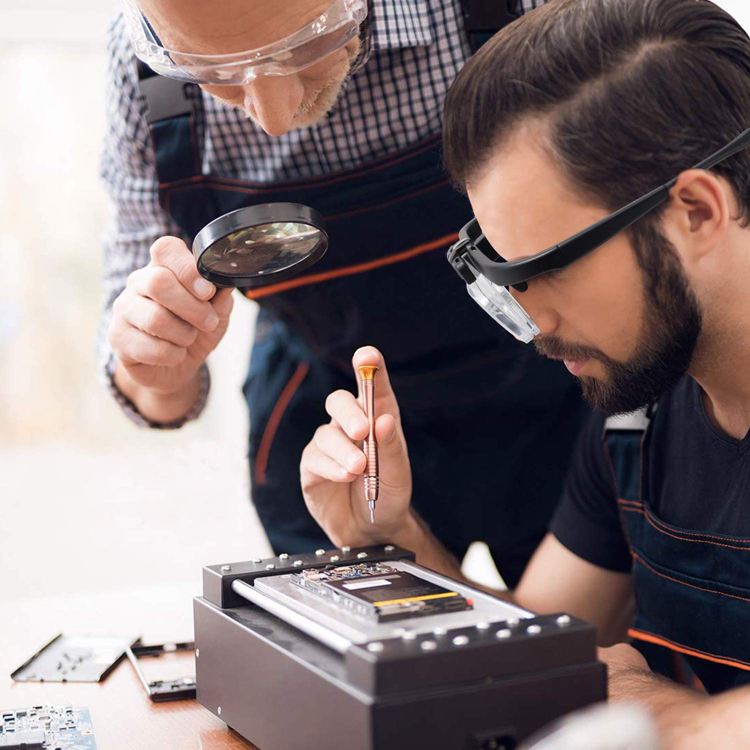 - 【2 LED Illuminative Lights】The headset magnifier is equipped with 2 ultra bright energy-efficient LEDs which provide a precise,uniform,and bright illumination under low light conditions or in the dark to ensure a perfect lighting magnified viewing experience,which is helpful for people with macular degeneration or far-sightedness/feyopia!The eye-friendly LED lights effectively minimizes glare and strobes,white light color closes to natural light,protect your eyes away from exhaustion!.