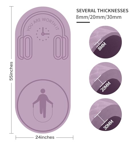 LERYG 8/20/30mm Jump Rope Mat Fitness Exercise Mat Durable, Non-Slip, Workout Mats with Jump Rope & Carrying Bag for Home Gym Flooring in Blue(55"x 24")