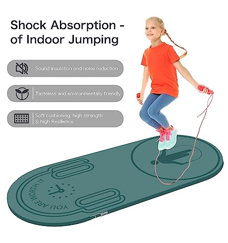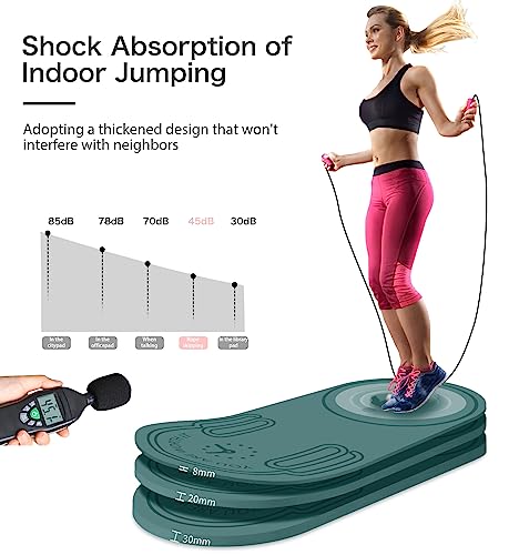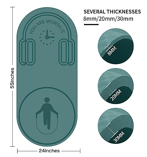 LERYG 8/20/30mm Jump Rope Mat Fitness Exercise Mat Durable, Non-Slip, Workout Mats with Jump Rope & Carrying Bag for Home Gym Flooring in Darkgreen(55"x 24")