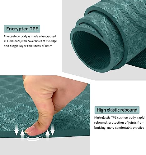 - ❤ THICK & SAFE: This 8mm thick exercise mat would alleviate stress on pressure points such as joints, hips, hands and knees.This durable and thick yoga mat with extra cushioning effect may well protect your joints during your yoga or fitness exercise.