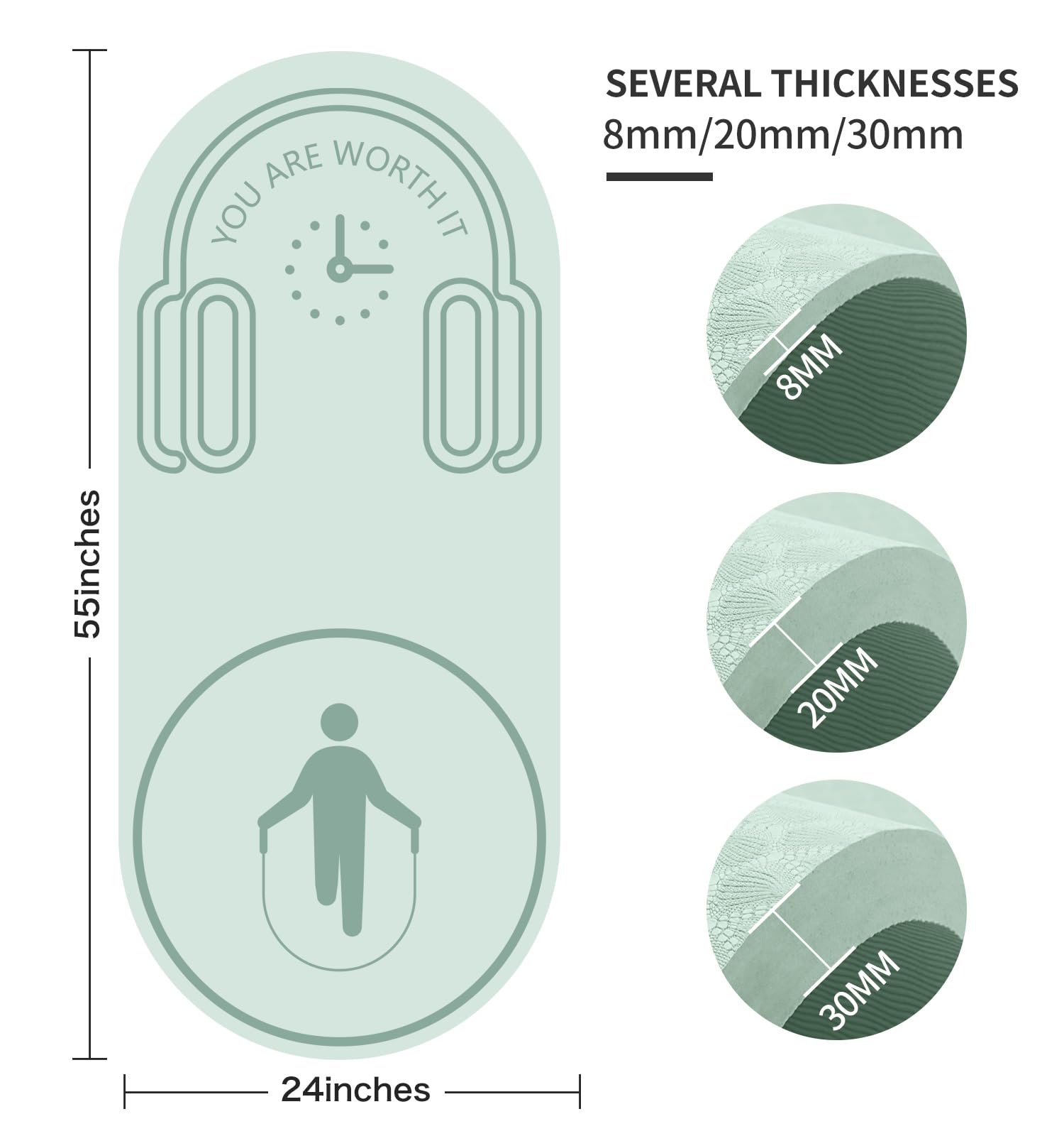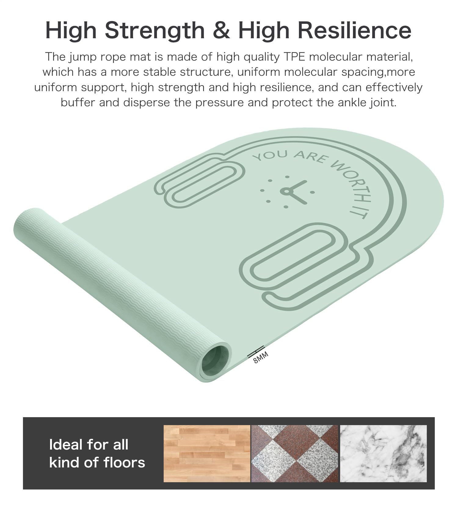 LERYG 8/20/30mm Jump Rope Mat Fitness Exercise Mat Durable, Non-Slip, Workout Mats with Jump Rope & Carrying Bag for Home Gym Flooring in Green((55"x 24")