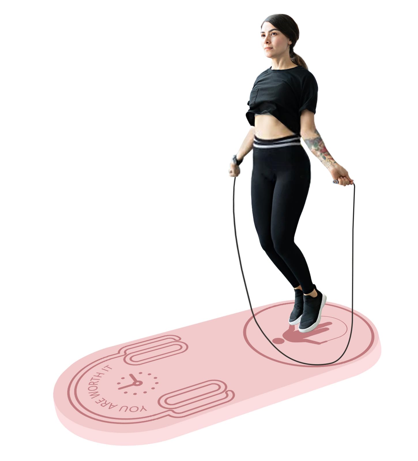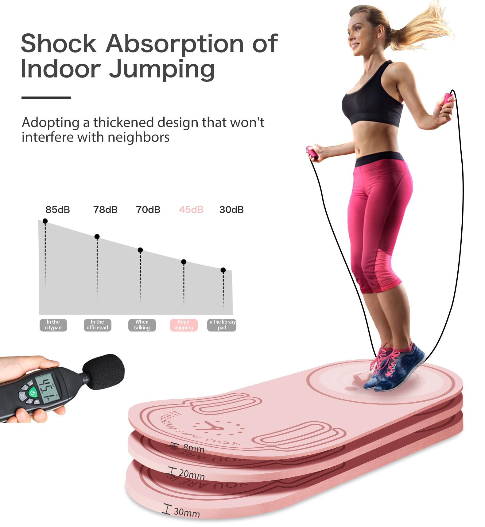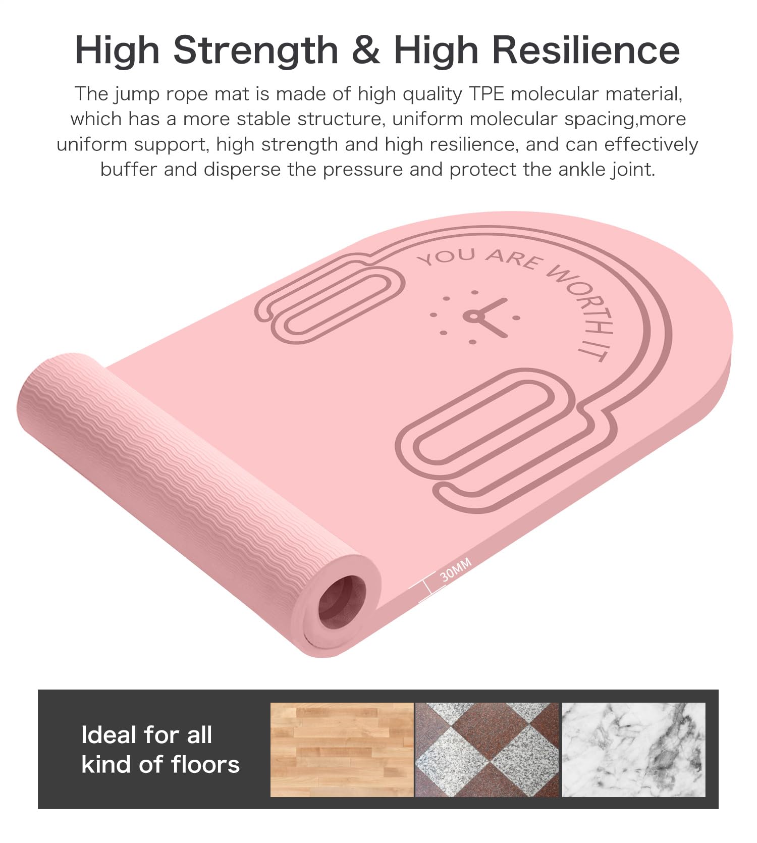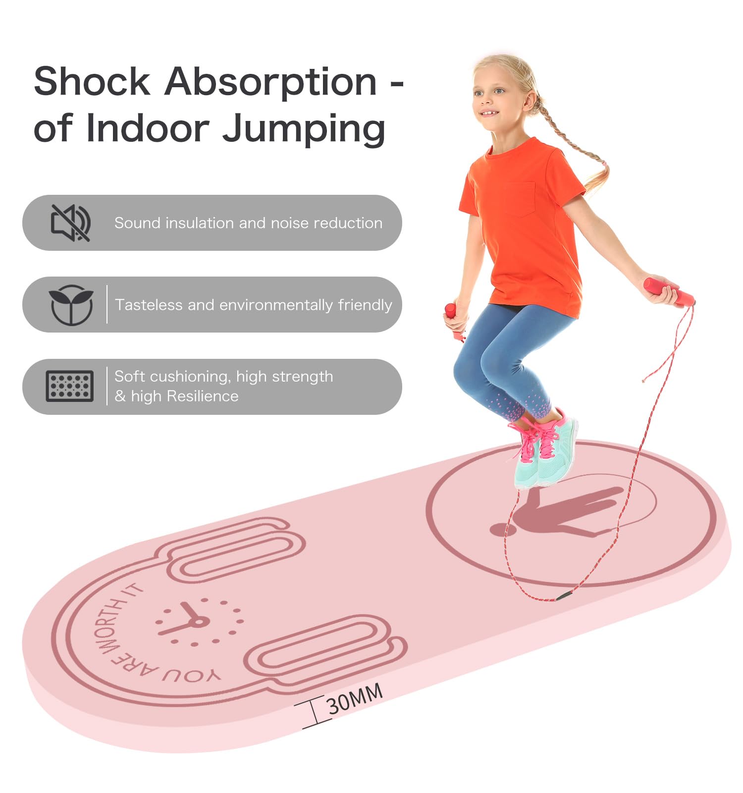 LERYG 8/20/30mm Jump Rope Mat Fitness Exercise Mat Durable, Non-Slip, Workout Mats with Jump Rope & Carrying Bag for Home Gym Flooring in Pink(55"x 24")