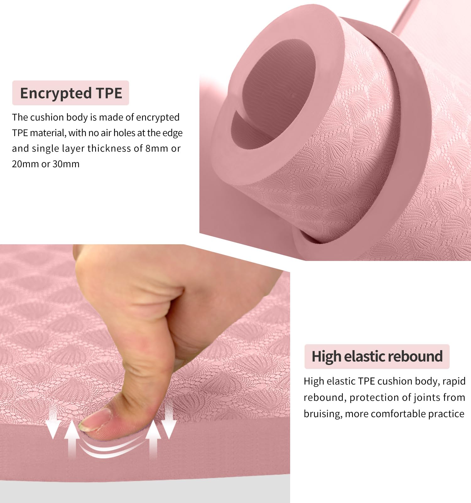 - ❤ THICK & SAFE: This 30mm thick exercise mat would alleviate stress on pressure points such as joints, hips, hands and knees.This durable and thick yoga mat with extra cushioning effect may well protect your joints during your yoga or fitness exercise.