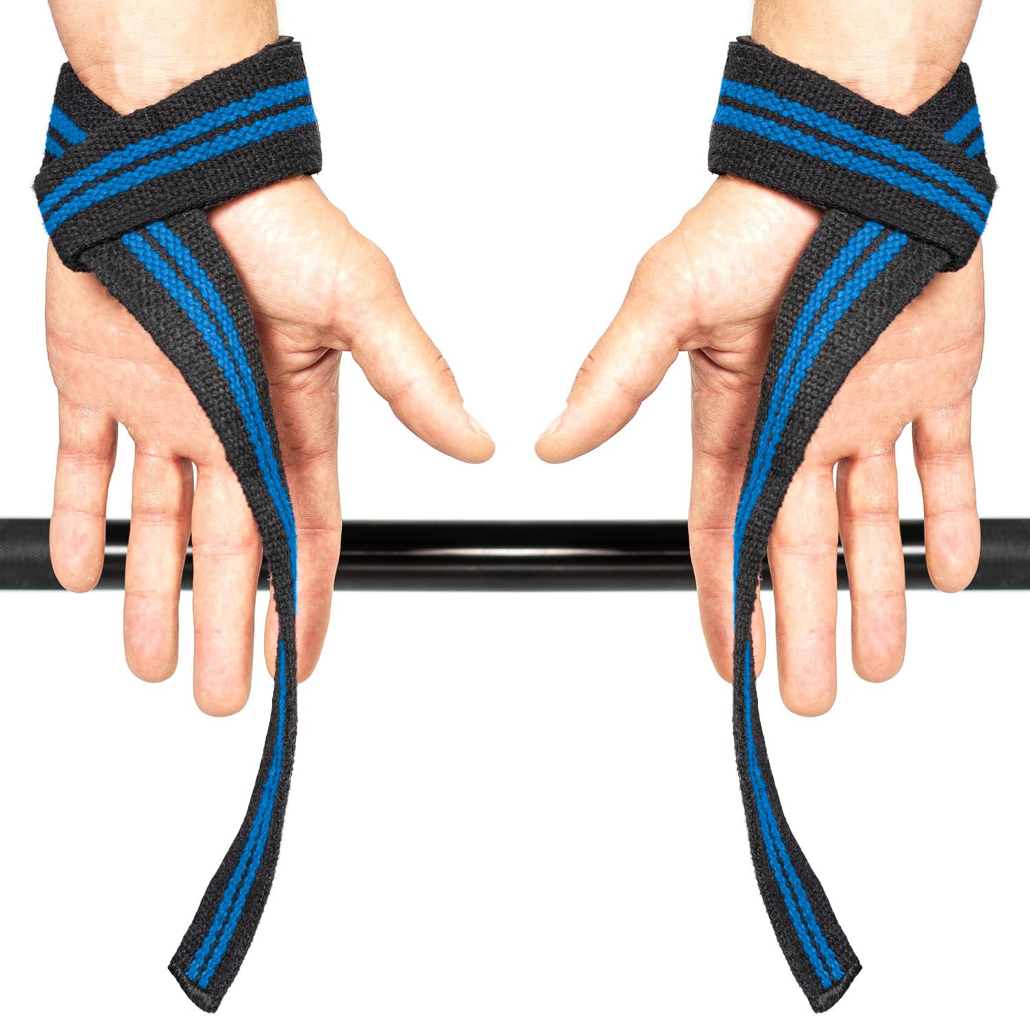 Lifting Straps (1 Pair) - Padded Wrist Support Wraps - for Powerlifting, Bodybuilding, Gym Workout, Strength Training, Deadlifts & Fitness Workout (Black/Blue)