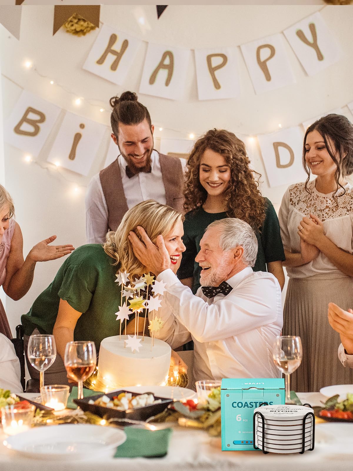 - Awesome, They Are Easy to Store : Equipped with an attractive wrought-metal style black coasters holder that can keep all your drink coasters together neatly