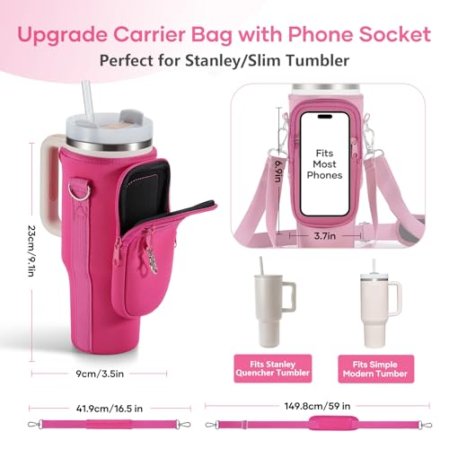 - Perfect Accessories for Stanley Cup: This water bottle holder with strap is specially designed for Stanley Quencher H2.0 40/30oz and Stanley Adventure Quencher 40oz, this Carrier bag with strap fits your Stanley dupe like a glove, could free your hands, offering superior protection against drops and silence when setting down. Bonus with Straw Cover and Spill Stopper, these Stanley Cup accessories can keeps the straw and cup hygienic, enable your drink safely without spilling anytime.
