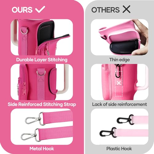 - Perfect Gift: This stylish water bottle carrier bag for Stanley 30oz/40oz tumbler is perfect for walking, yoga, CrossFit,biking, camping, hiking, school, commuting, or even if you're at the beach, gym, or sporting events. This Stanley holder with straps is a perfect gift for Stanley fans and a good gift for Valentine's Day, Birthday. Hot popular color(hot pink,creamy white, orchid, flint grey,rose quartz) for you choose, perfectly match with your Stanley Cup.