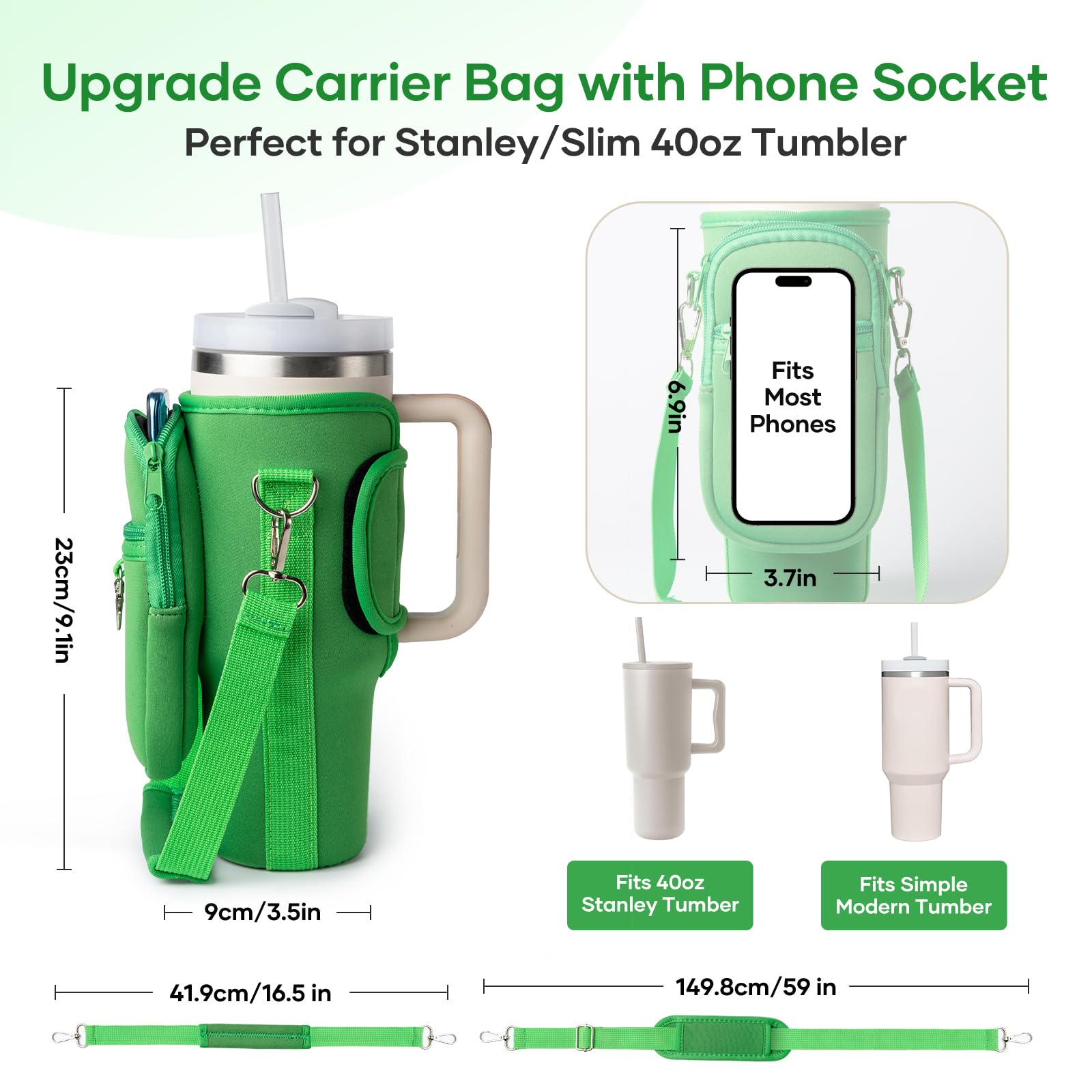 - Perfect Accessories for Stanley Cup: This water bottle holder with strap is specially designed for Stanley Quencher H2.0 40/30oz and Stanley Adventure Quencher 40oz, this Carrier bag with strap fits your Stanley dupe like a glove, could free your hands, offering superior protection against drops and silence when setting down. Bonus with Straw Cover and Spill Stopper, these Stanley Cup accessories can keeps the straw and cup hygienic, enable your drink safely without spilling anytime.