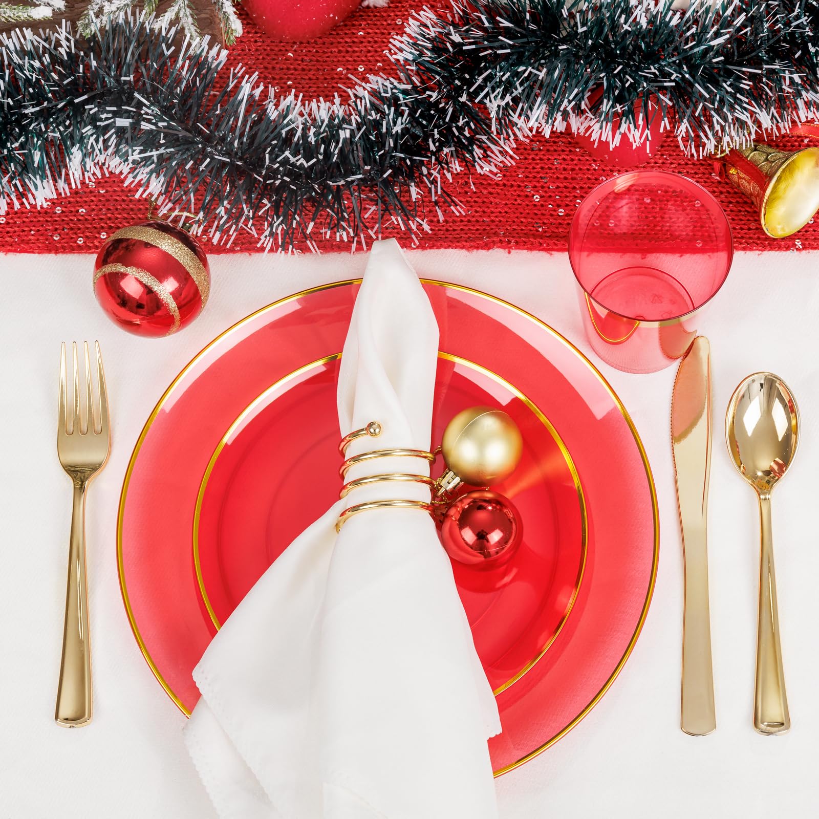 - EXQUISITE DESIGN:Our unique clear red disposable plates are designed to impress with their vibrant color and elegant look,let your guests feel delighted and satisfied.Elevate your Christmas party supplies to a whole new level!
