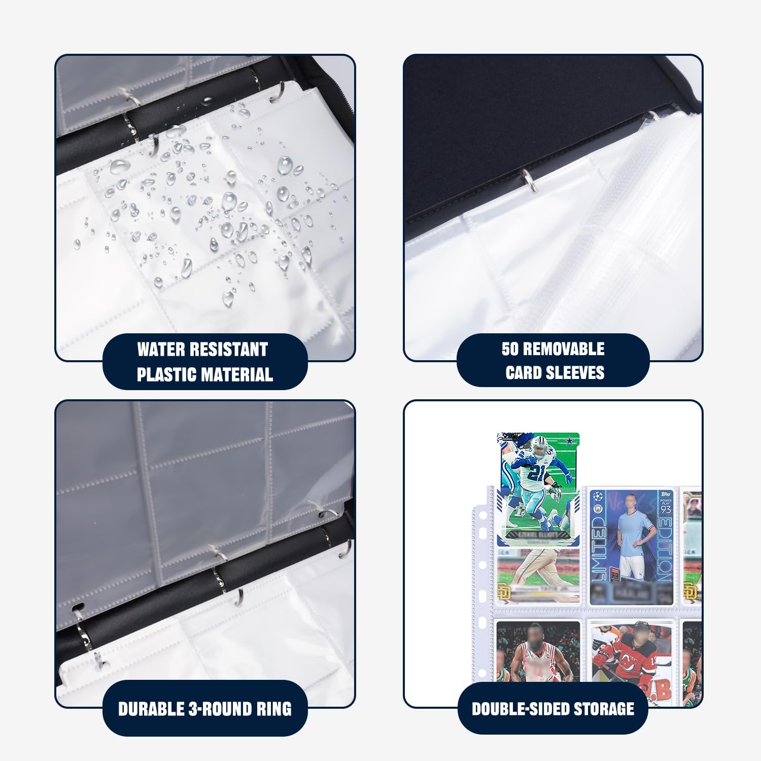 - 【 Waterproof PU High-Quality Material 】 The sports trading card binder is exquisitely designed, and the collection cover is made of waterproof PU fabric, which is dustproof and moisture-proof. This sports card binder is a great way to store and display your favorite collection cards or as a photo album.