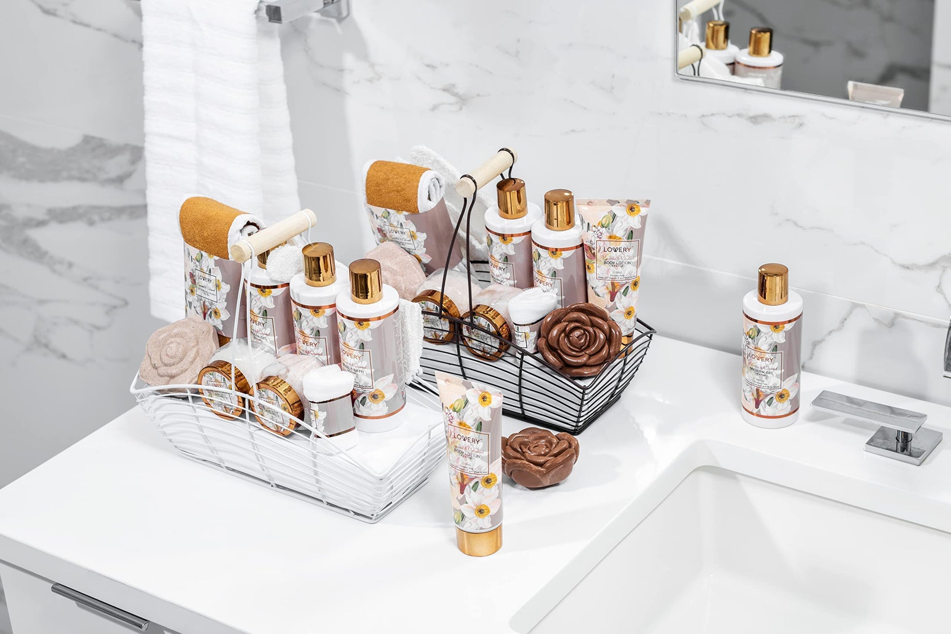 LOVERY Vanilla Coconut Bath & Spa Gift Set, 13pc Spa Gift Basket, Gifts for Women & Men, Bath Bomb, Body Lotion, Bubble Bath & More