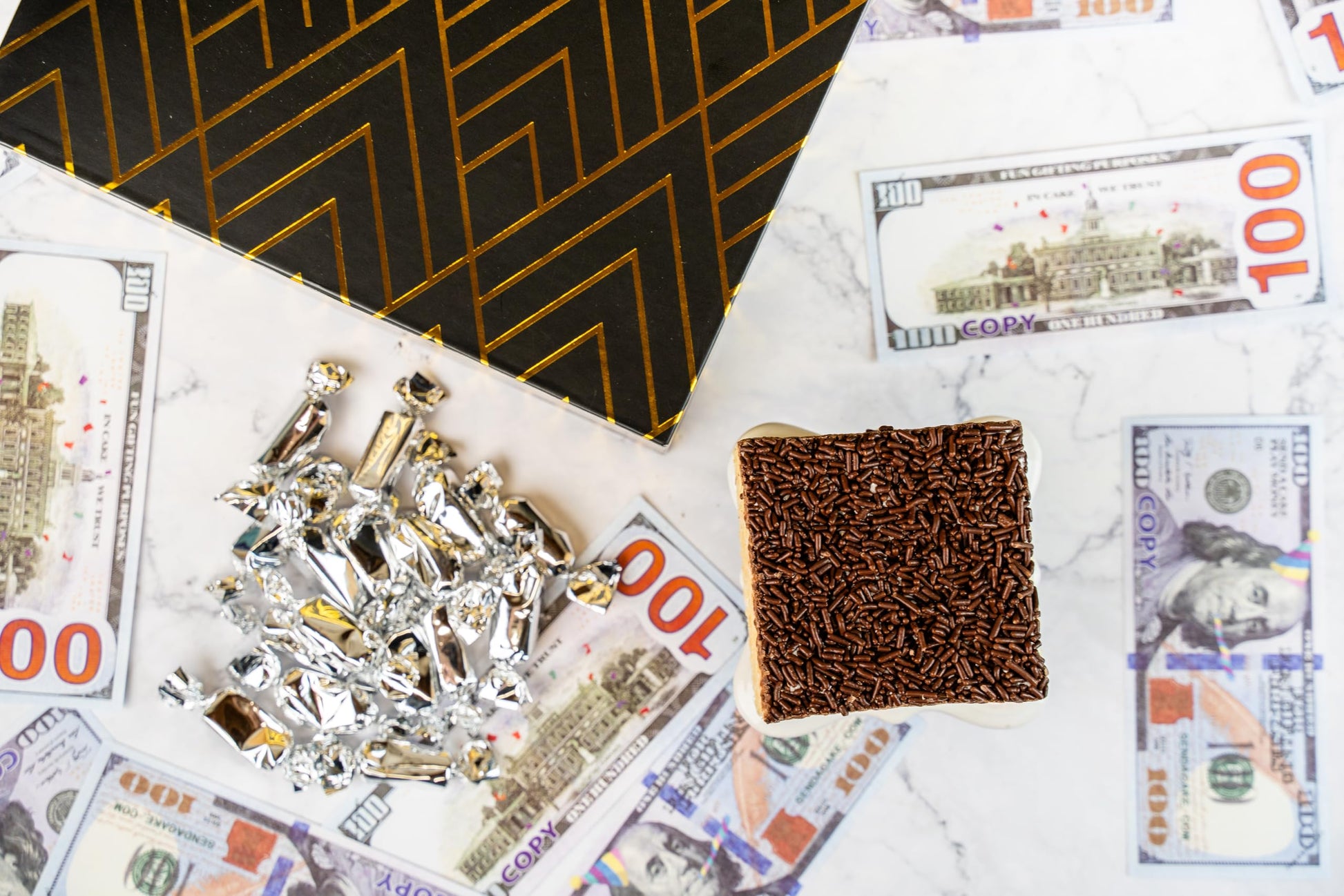 Luxe Billionaire Box featuring Shooting Birthday Bills. Ready to Gift, No Assembly Required with Music, Sweet Caramels & Delicious 3" Chocolate Sprinkle Crispy Cake for Delivery – Birthday Gift for Women, Men, Sister, Mom, Dad, Best Friend, Adults, Kids
