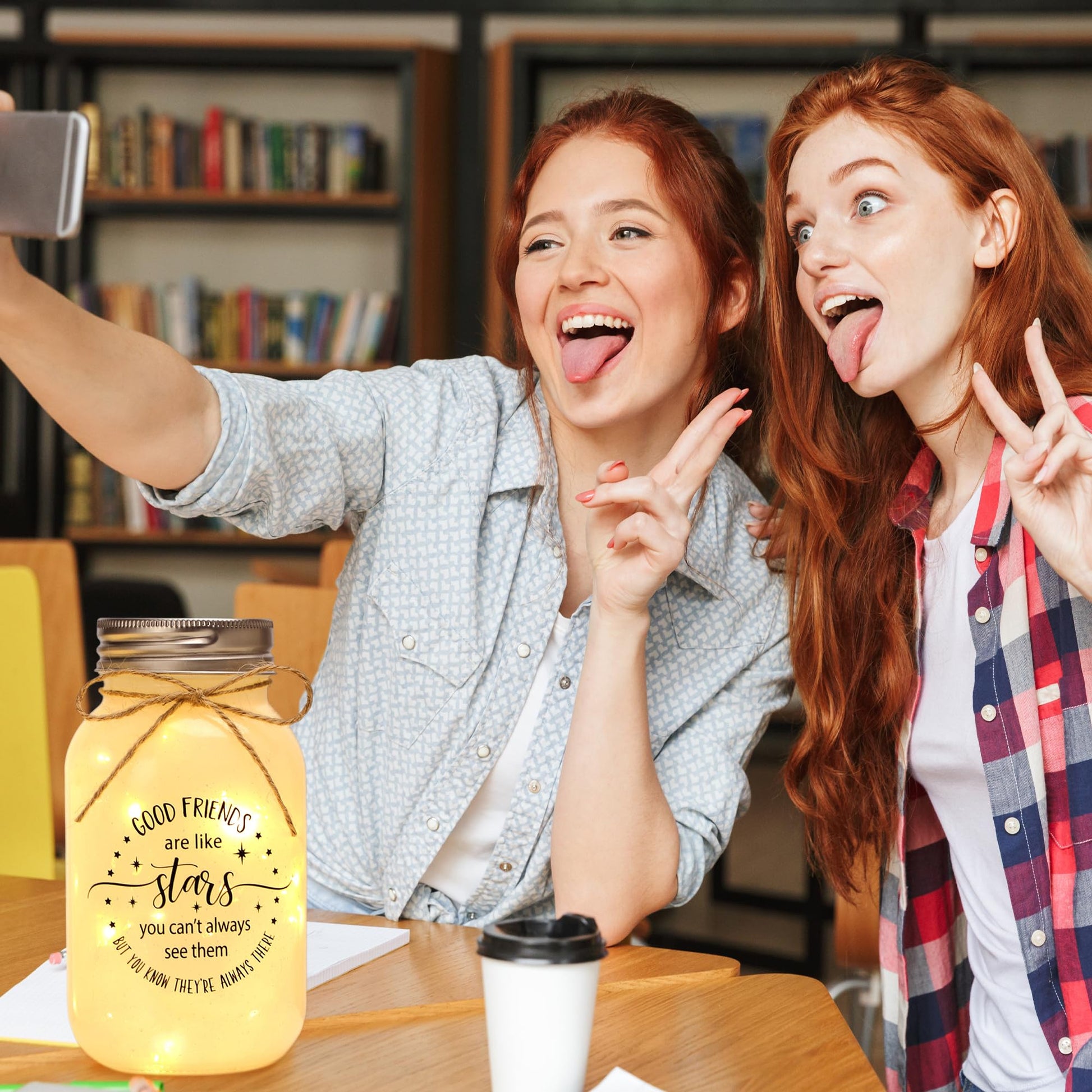 - This beautiful jar with LED warm light, create a heartwarming gift, 'Good friends are like stars', Warm words express the deep feelings of you and your friends. It's a gift that will make them feel special. This Mason jar is perfect for birthday and holiday gifts for your friends.