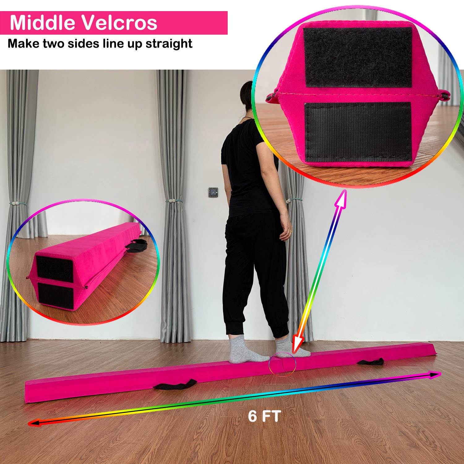 Marfula 6 FT / 8 FT / 9 FT Gymnastics Balance Beam Foam Folding Floor Balance Beam - Extra Firm - Suede Cover - Anti Slip Bottom with Carry Bag for Kids/Adults Home Use (Pink, 6 FT)