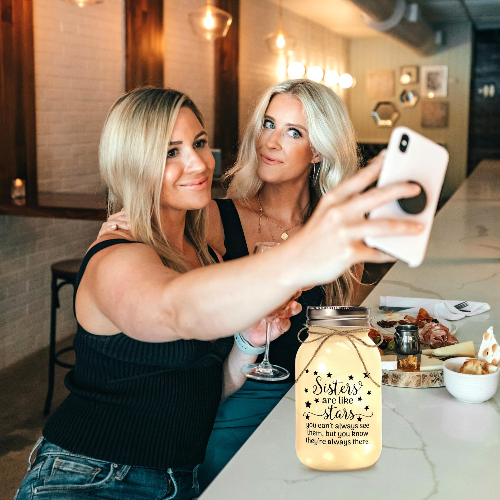 - This beautiful jar with LED warm light, create a heartwarming gift, 'Sisters are like stars', Warm words express the deep feelings of you and your sisters. It's a gift that will make them feel special. This Mason jar is perfect for birthday and holiday gifts for your sisters and sisterly friends.