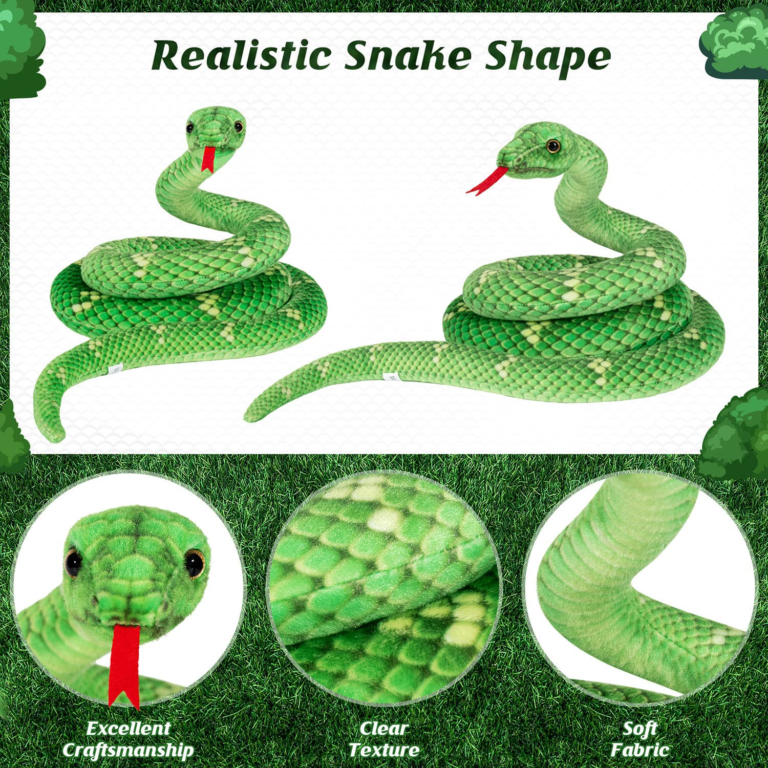 - REALISTIC BOA CONSTRICTOR SHAPE : Our plush snake with terrifying, realistic snake shapes and clear texture. The fierce stuffed snake head and terrifying eyes exude a hint of horror. The snake stuffed jungle animals will be your most amazing toy snakes for kids
