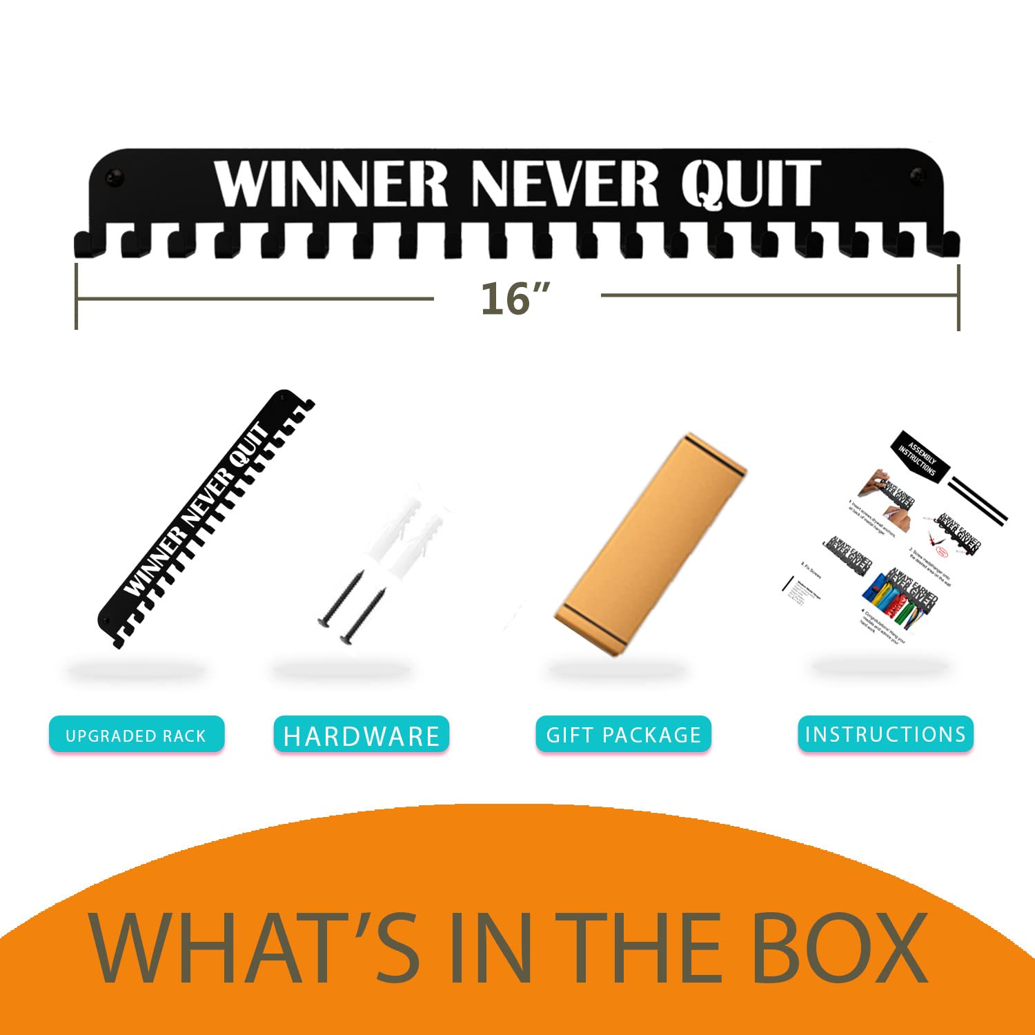 - ✔【SIMPLE & ELEGANT MODERN DESIGN】-Stylish,modern style adds great beauty and reduces annoying clutter.【WINNER NEVER QUIT】-medal hanger holder represents Human must not accept;Theymust challence.to achieve greatness,start where you are,use what you have,do what you canThey believed medal hanger holder on the wall,can always inspire you to achieve what you want, and what you can. with this powerful storage medal hanger for medals made of high sturdy resistant premium material you
