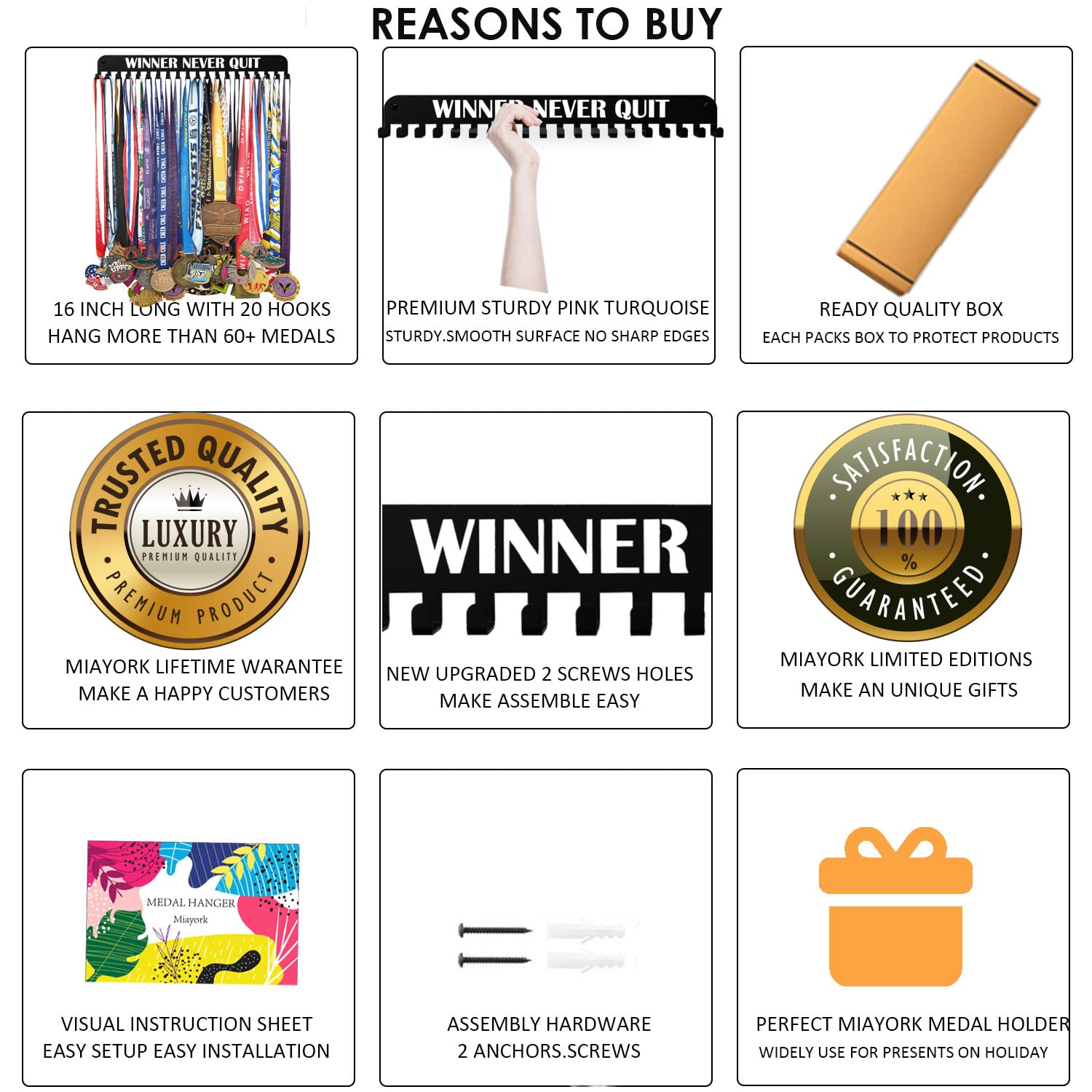 - ✔【Assured Brand】-Miayork is different kind of Company that prides itself in providing the absolute best customer service , if you has any questions for this medal hanger display and it is not suitable for you. Send to Clicking 'Ask seller' and received reply. (In fact, you do not need to send back)