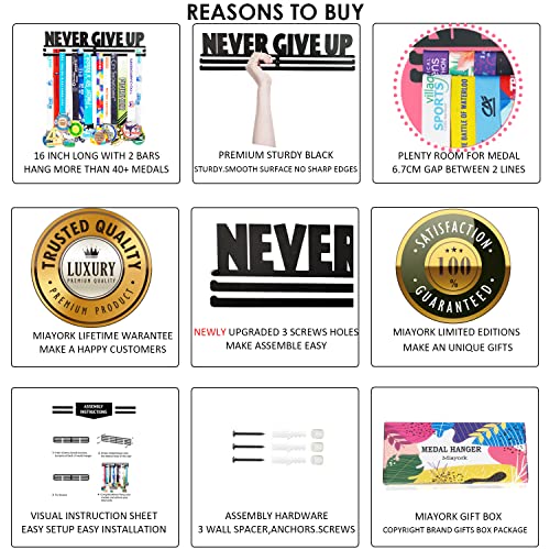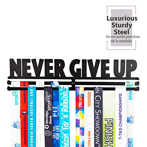 - ✔【SIMPLE & ELEGANT MODERN DESIGN】-Stylish,modern style adds great beauty and reduces annoying clutter. 【NEVER GIVE UP DESIGN】-medal hanger holder represents Human must not accept;they must challenge.to achieve greatness,start where you are,use what you have,do what you can.They believed medal hanger holder on the wall,can always inspire you to achieve what you want, and what you can. with this powerful storage medal hanger for medals made of high sturdy resistant premium material you