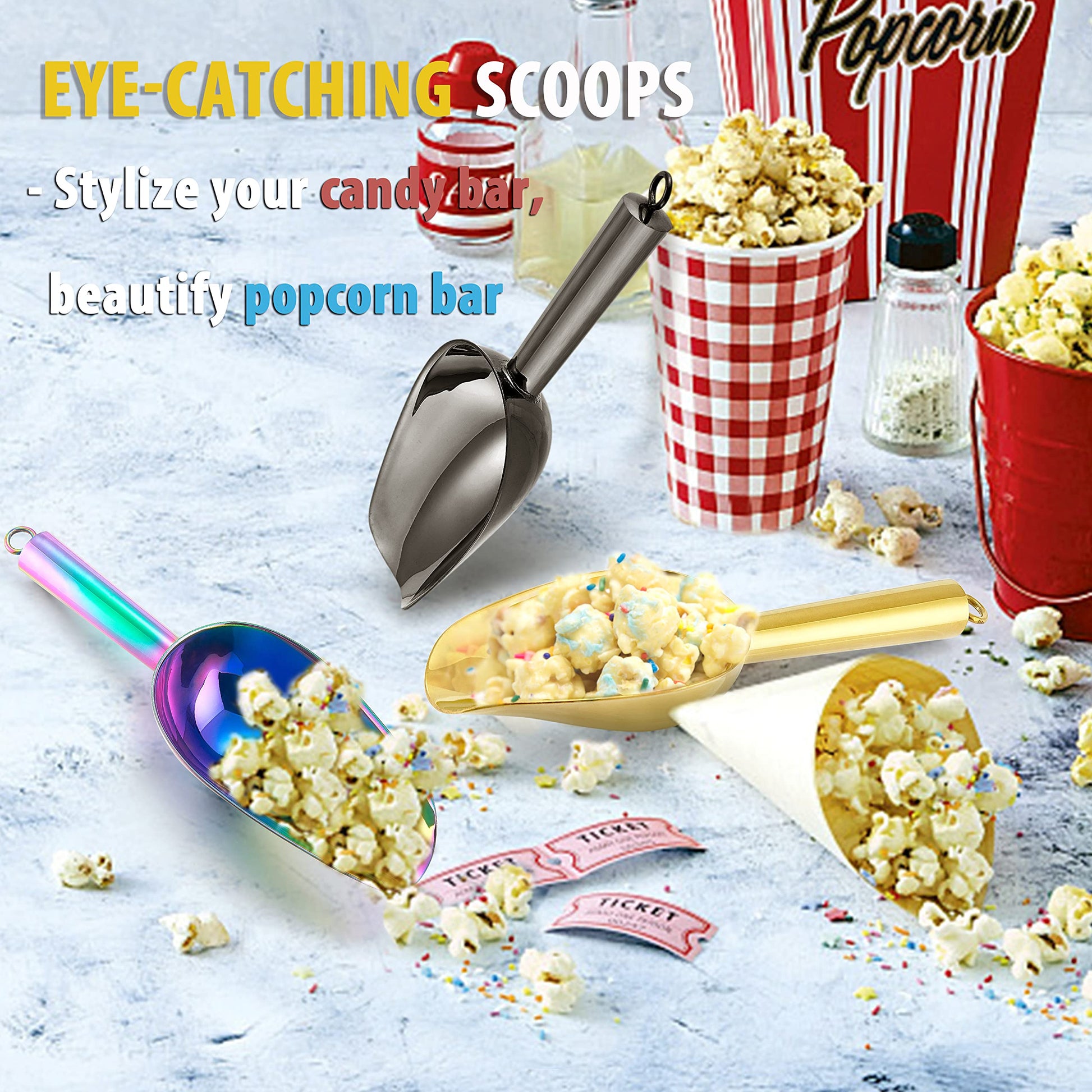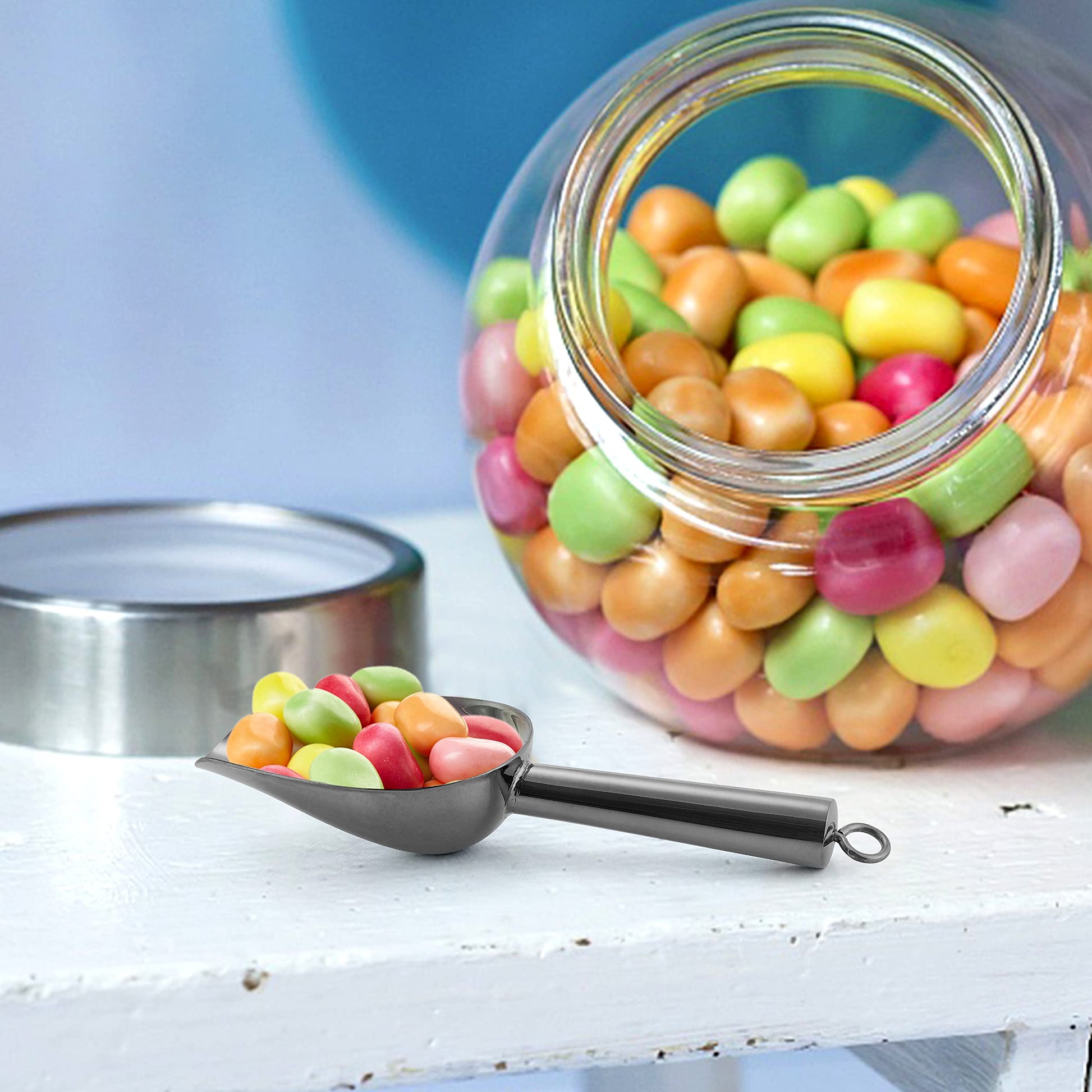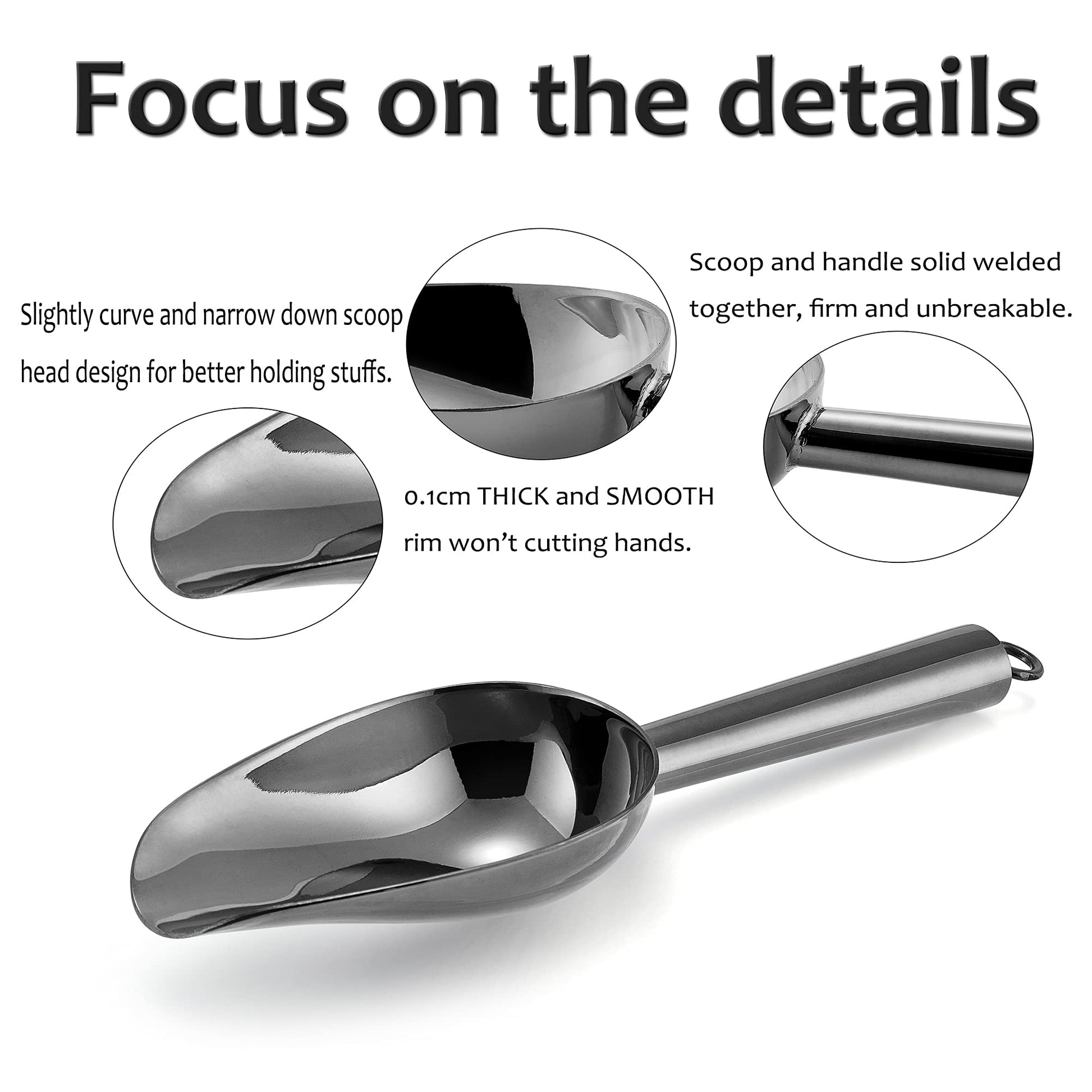 - PLATINUM BLACK UTILITY SCOOP- Eye-catching platinum black scoop stylizes your candy bar, Match well with any occasions, wedding party/buffet, Versatile to measuring ice cube, sugar, flour, candy, popcorn, powders, ingredients, pet food, bird seed etc