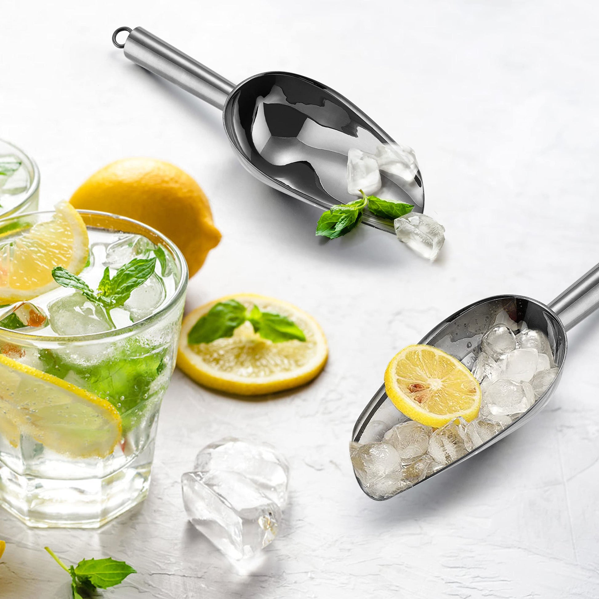 - HIGH QUALITY- Made of premium food-grade stainless steel, Non-toxic and high hardness to ensure better rust proof and corrosion resistance, Superior to plastic/aluminum ice scoop, Healthy and durable for daily use, Dishwasher safe to make clean a breeze