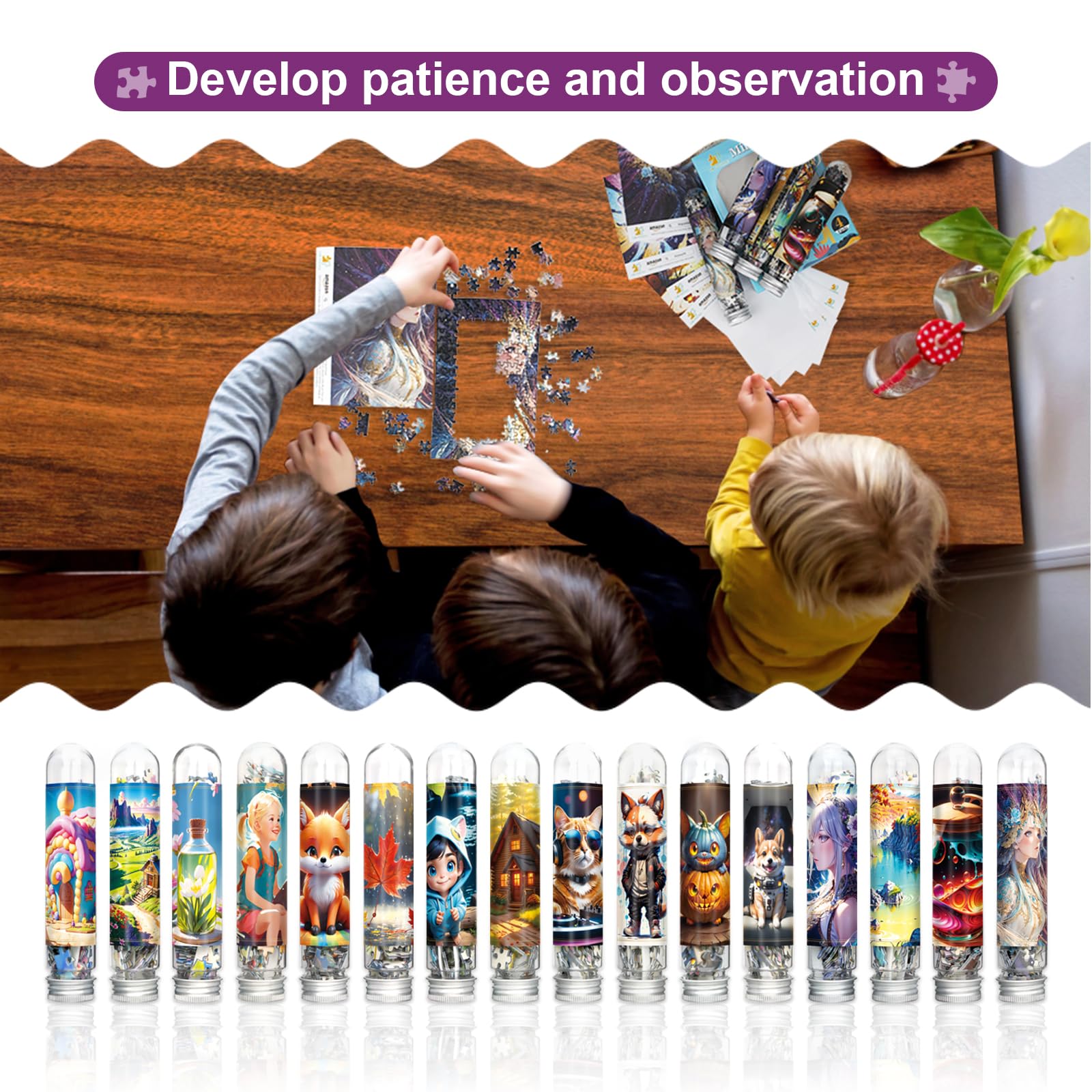 - Ultra Portable Design: This puzzles for adults are stored in a sturdy plastic test tube.Small size is easy to carry and you can enjoy the joy of small puzzles anywhere.Each product contains 4 mini test tube puzzles, the size of the puzzle completed 15 x 10 cm (6 x 4 inches).