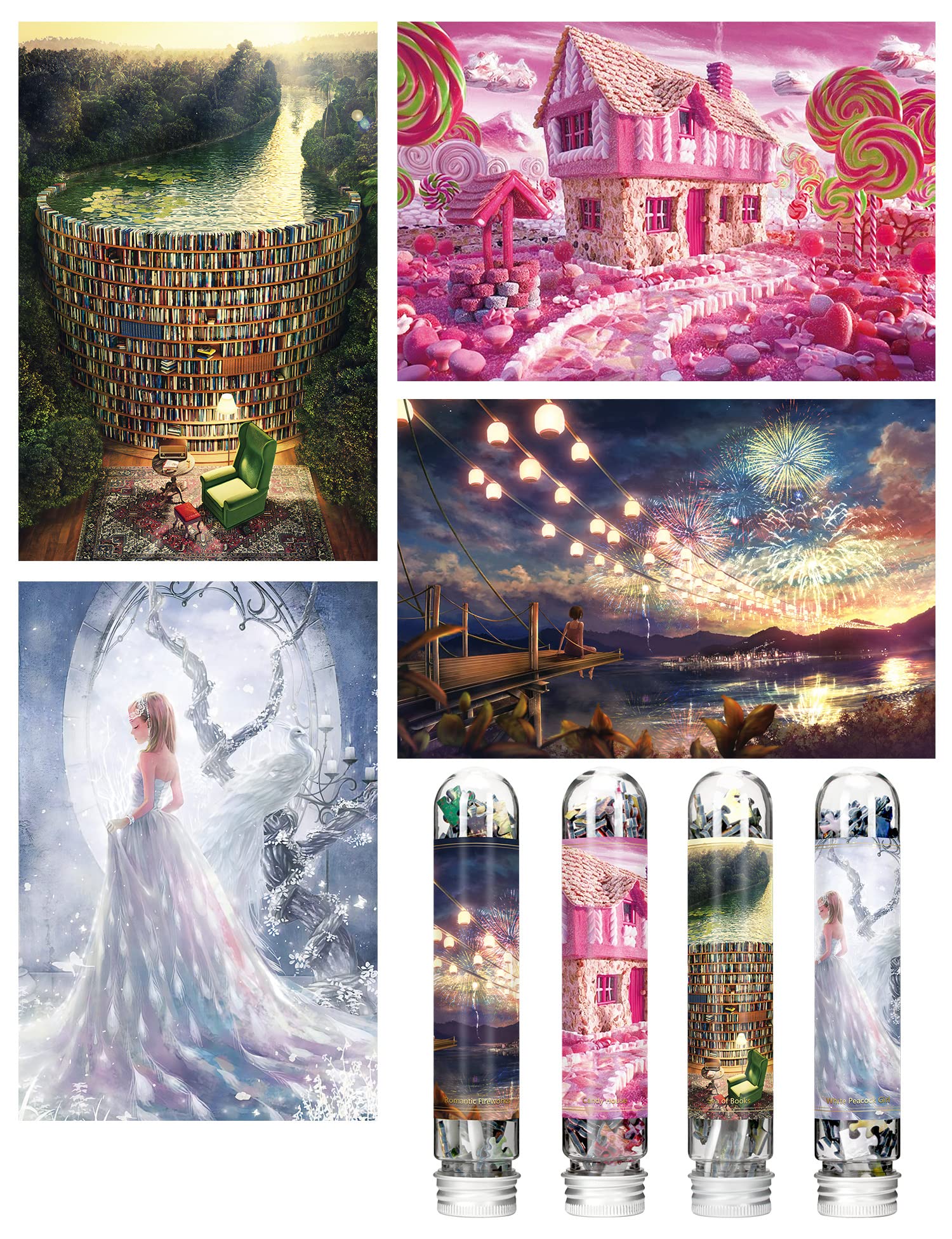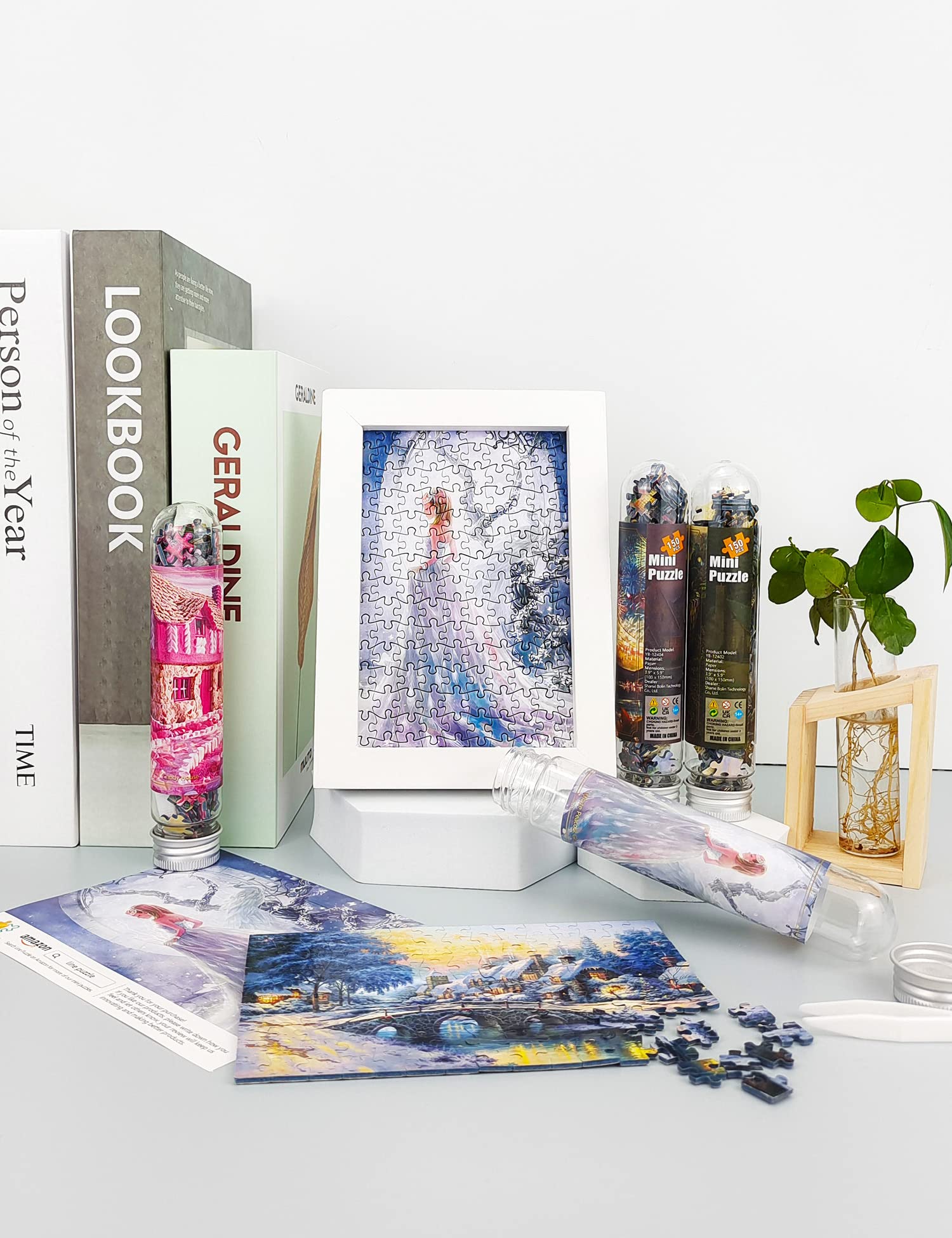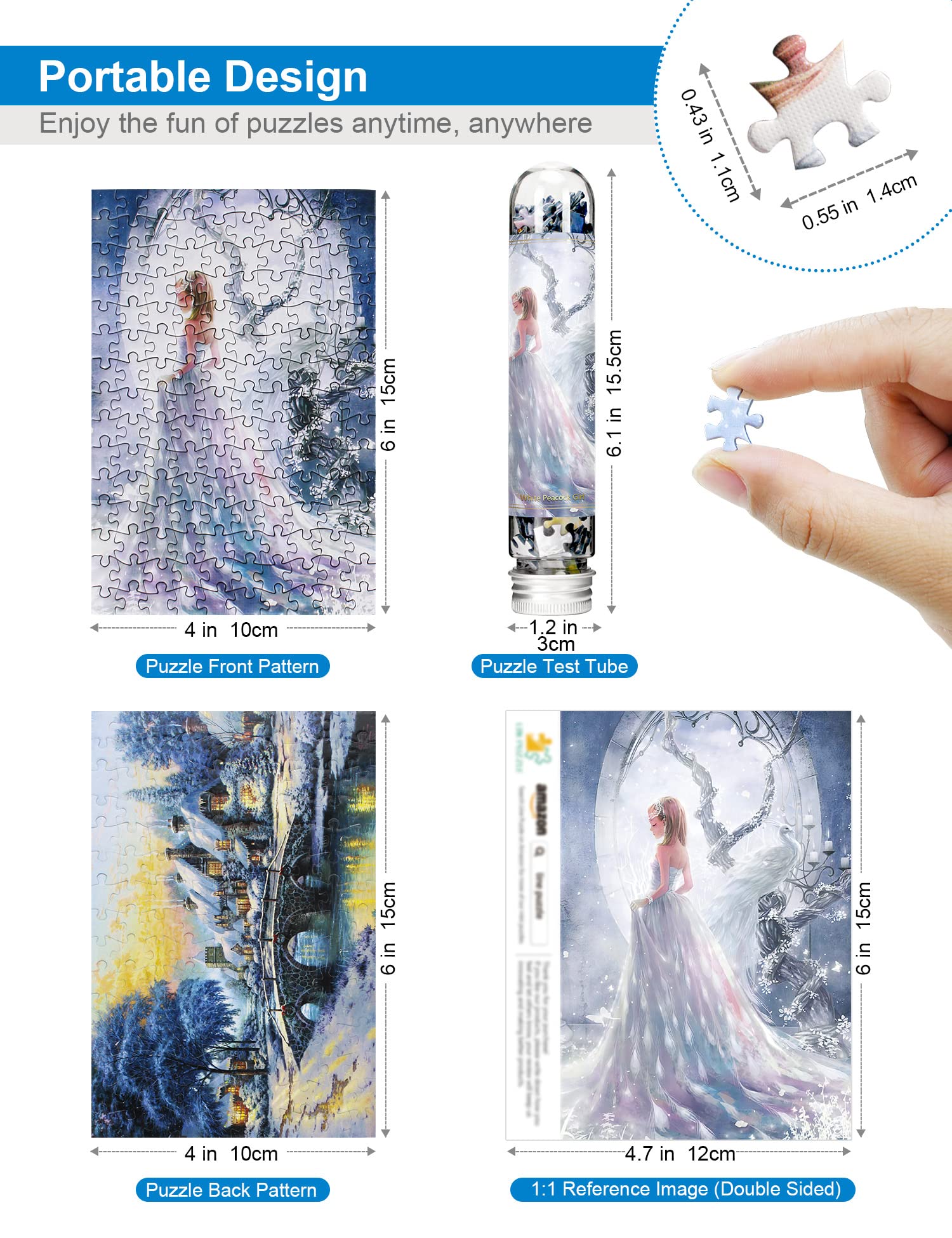 - Ultra Portable Design: This puzzles for adults are stored in a sturdy plastic test tube.Small size is easy to carry and you can enjoy the joy of small puzzles anywhere.Each product contains 4 double-sided mini test tube puzzles, the size of the puzzle completed 15 x 10 cm (6 x 4 inches).