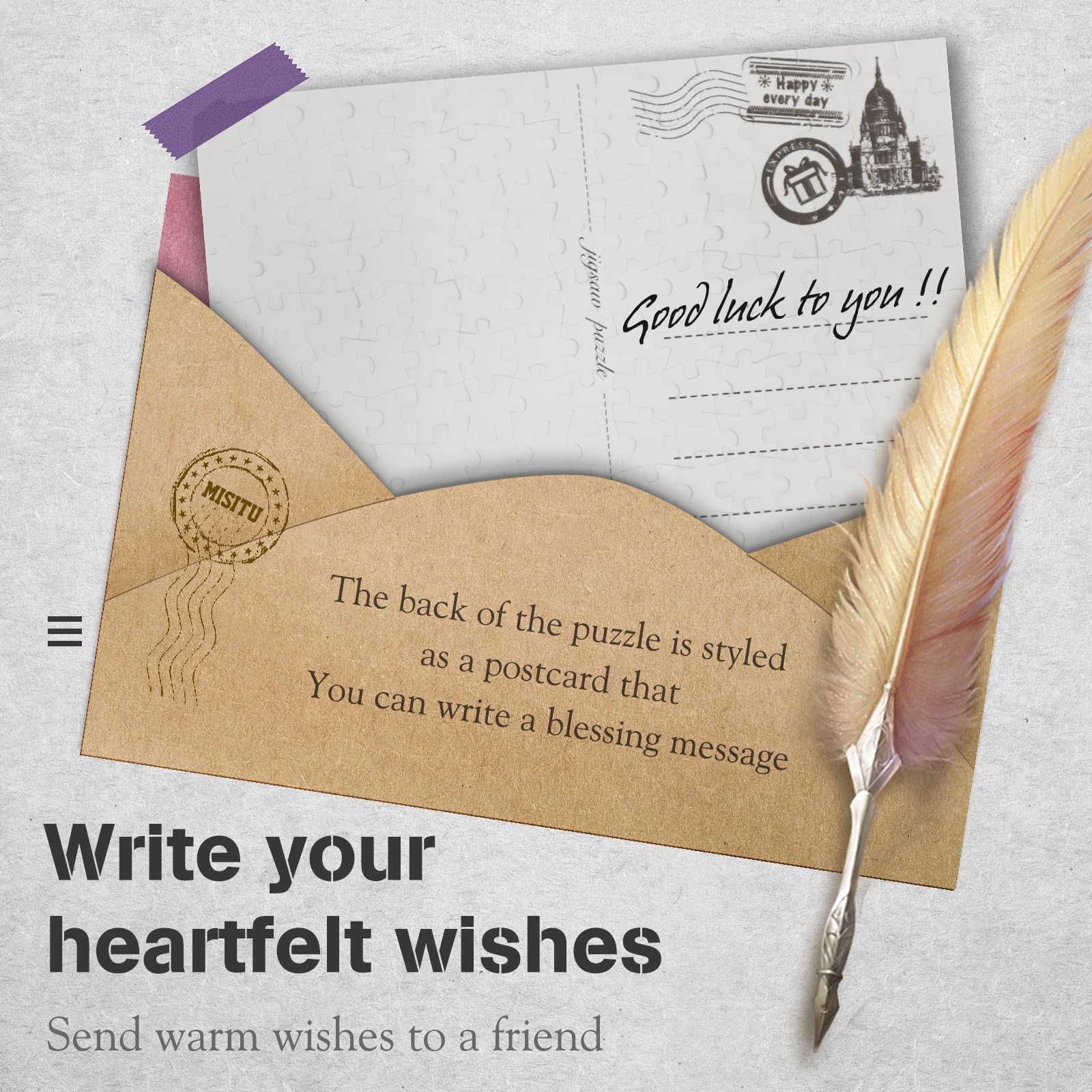 - Small Mini puzzles -- The small jigsaw puzzles for adults consists with 1:1 puzzles poster for reference. Postcard design on the backside of small puzzles. Finished micro puzzles, you can write a blessing on the back and send it to your favorite person.