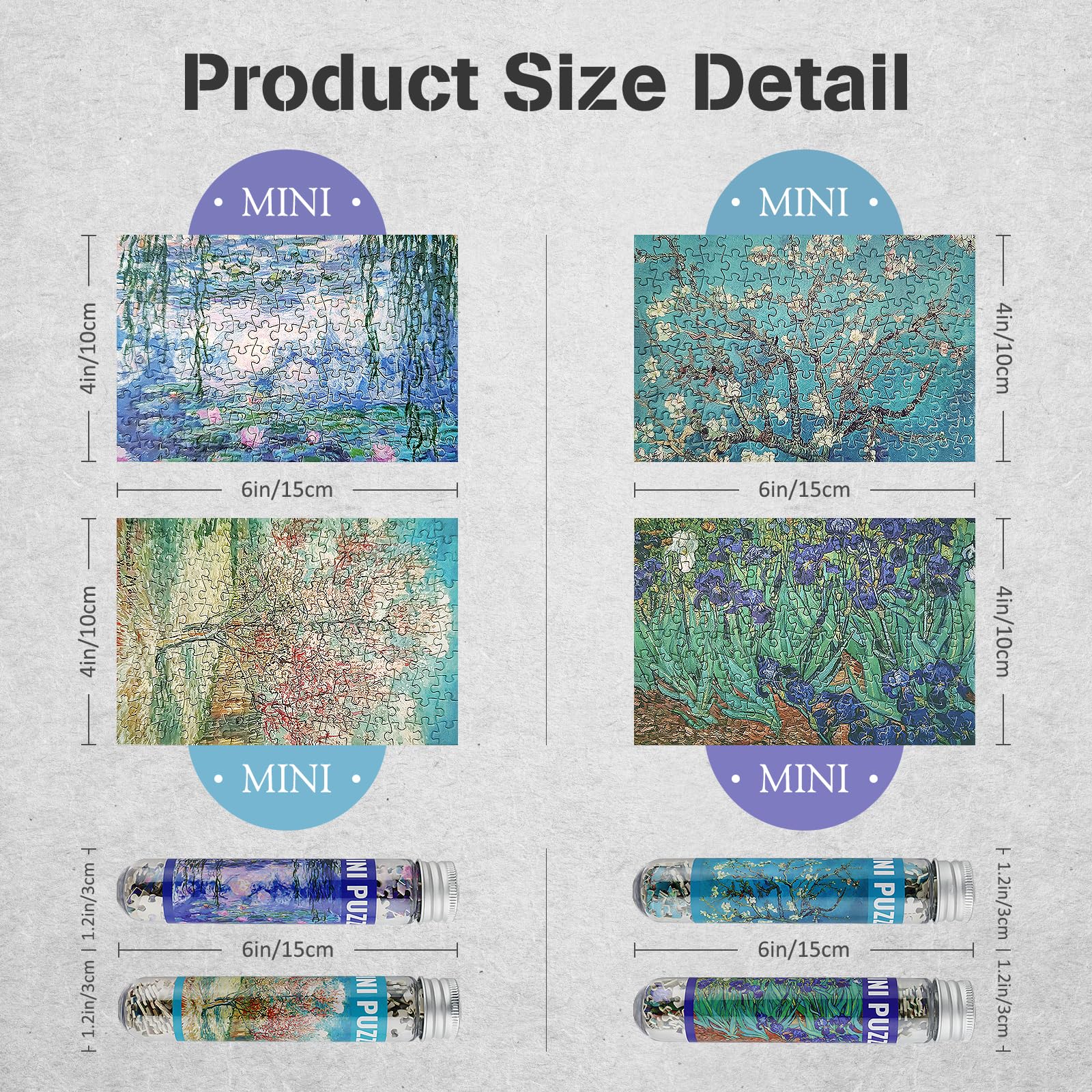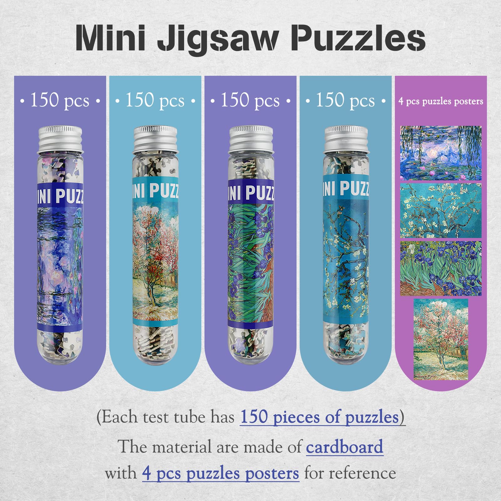 MISITU Small Jigsaw Puzzles for Adults Challenging Puzzle Small Puzzles Mini Jigsaw Puzzles for Adults 150 Pieces Micro Tiny Puzzle Van Gogh Art Puzzles Travel Puzzle 6 x 4 Inch 4 Packs