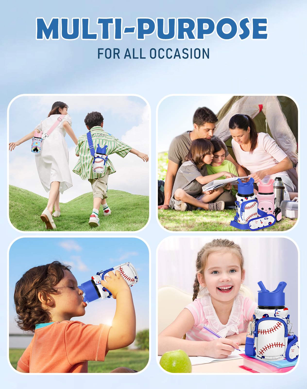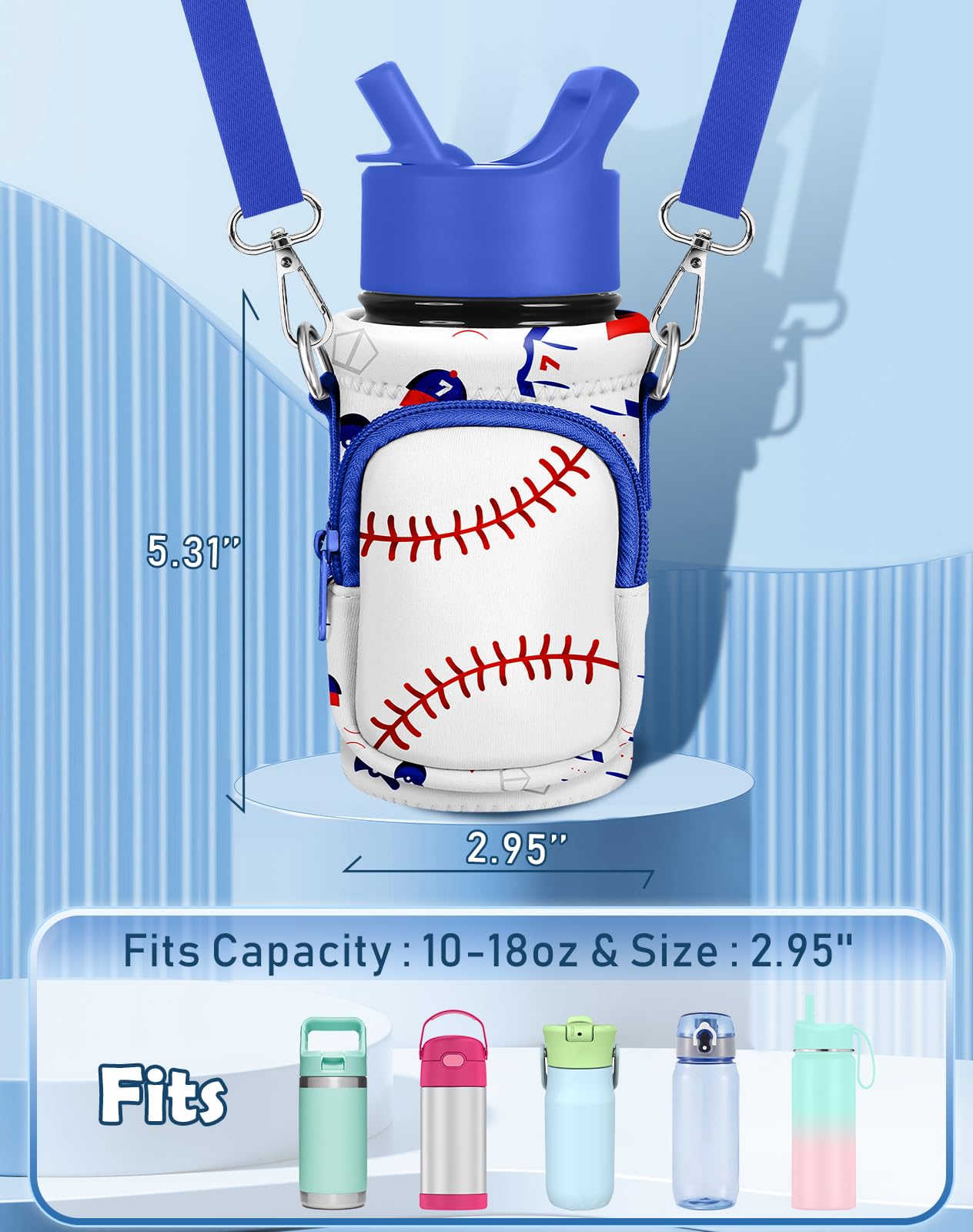 Miss Adola Water Bottle Carrier with Strap Cartoon Water Bottle Bags Holder for Kids Boys Girls Neoprene Insulated Bottle Bag for 10/12/14/16/18Oz Stainless Steel Glass Bottles Sleeve, Baseball