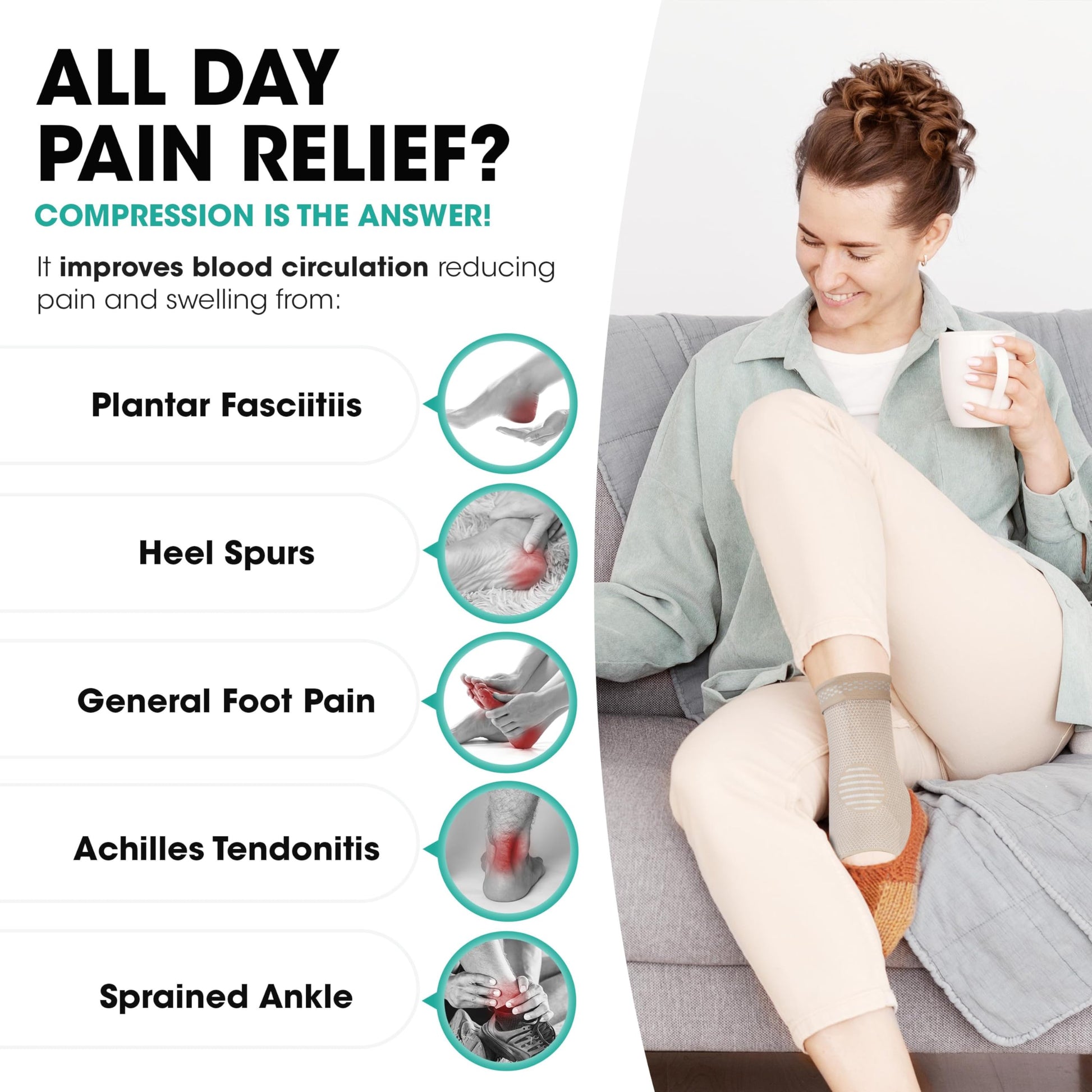 - NON-SLIP ANKLE COMPRESSION SLEEVES PAIR: Get two ankle compression socks and make sure your ankles get all the support they require. Get on with your life without agonizing ankle pain anymore.