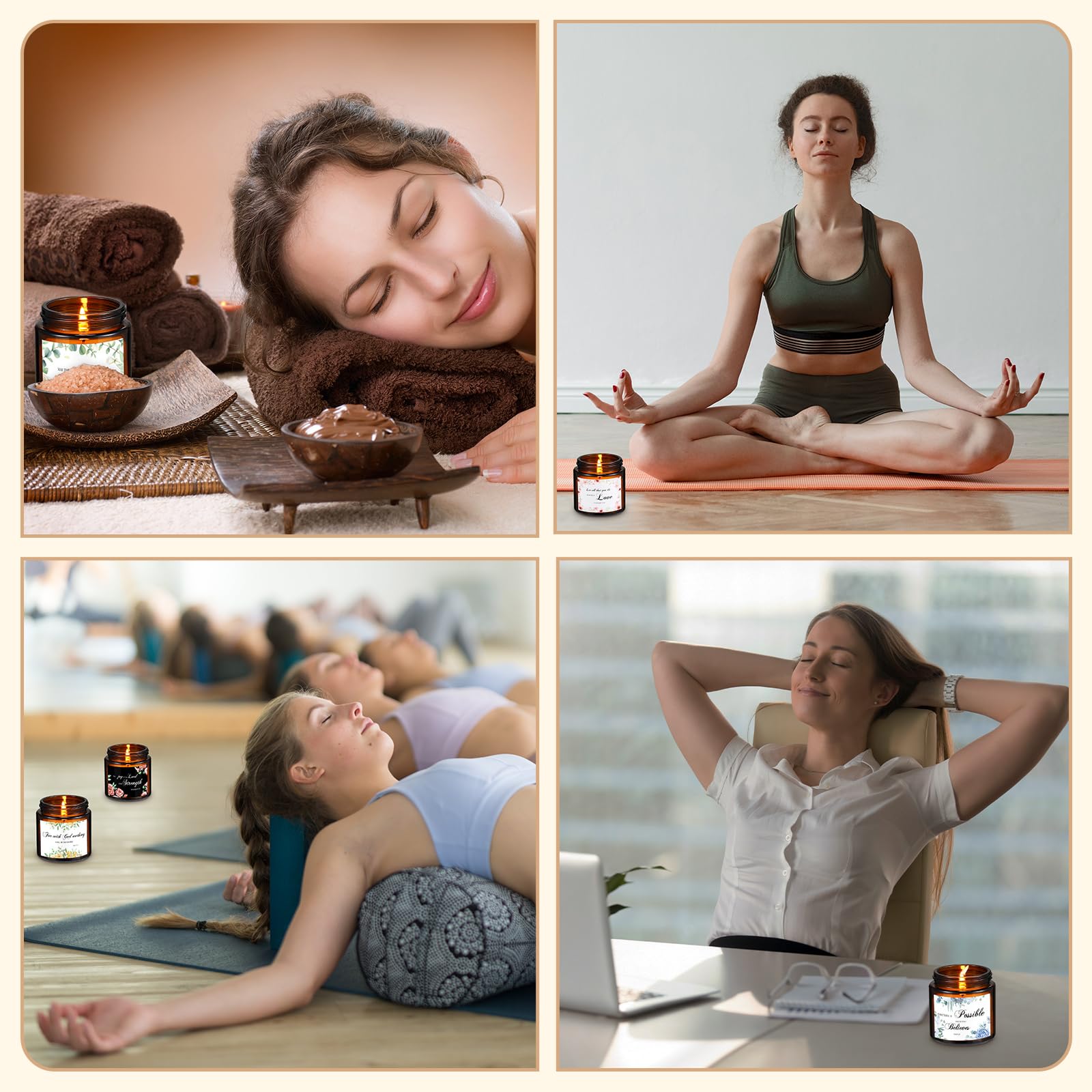- Safe and Fragrant: our stress relief candle aromatherapy is made of soy wax with a little fragrance essential oil; When burning, they are without black fumes, so it is safe to use them; Also, they can help you create a relaxing and delightful ambiance, making you feel refreshing